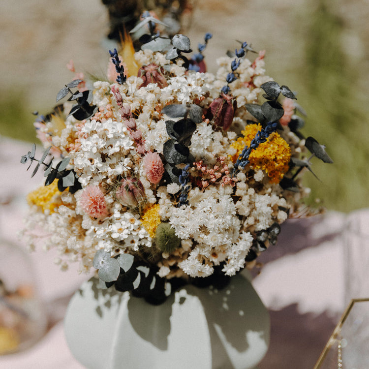 Seit 2020 gestalten wir bei Feder&Konfetti einzigartige Trockenblumenkunst – online und in unserem Store im Erzgebirge. Ob Brautstrauß, Tischdeko oder detailverliebte Arrangements: Unsere Trockenblumen verbinden natürliche Eleganz mit Nachhaltigkeit und schaffen unvergängliche Erinnerungen.