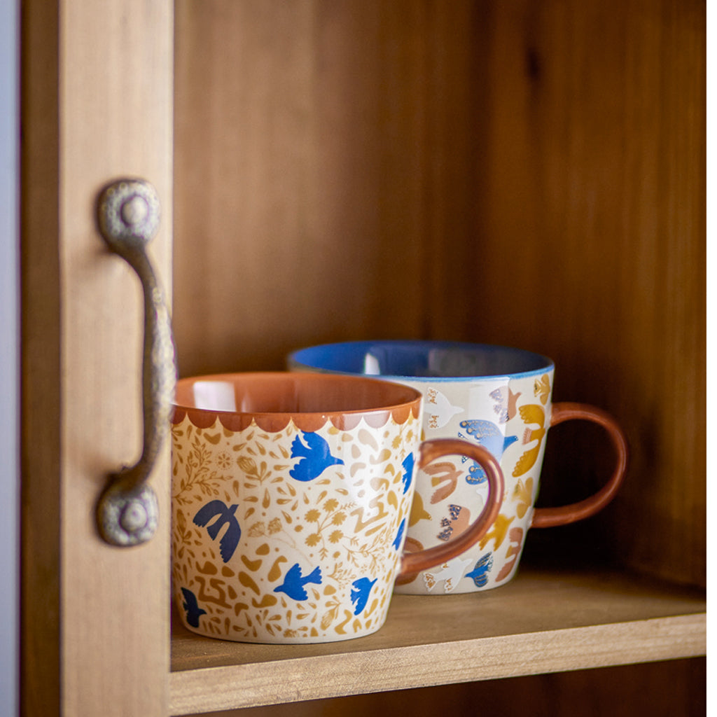 Gefertigt aus hochwertigem Steingut und veredelt mit Dekordruck und handbemalten Details, überzeugt jede Tasse durch ihre individuelle Ausstrahlung – leichte Farbabweichungen machen jedes Stück einzigartig. Mit einem großzügigen Fassungsvermögen eignen sich die Becher perfekt für Kaffee, Tee oder andere Heißgetränke und passen wunderbar zum „Styled Coziness“-Wohnstil von Bloomingville.