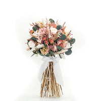 Hauptsächlich verwendete Trockenblumen: Eukalyptus, Nelke, Englische Rose, Schleierkraut