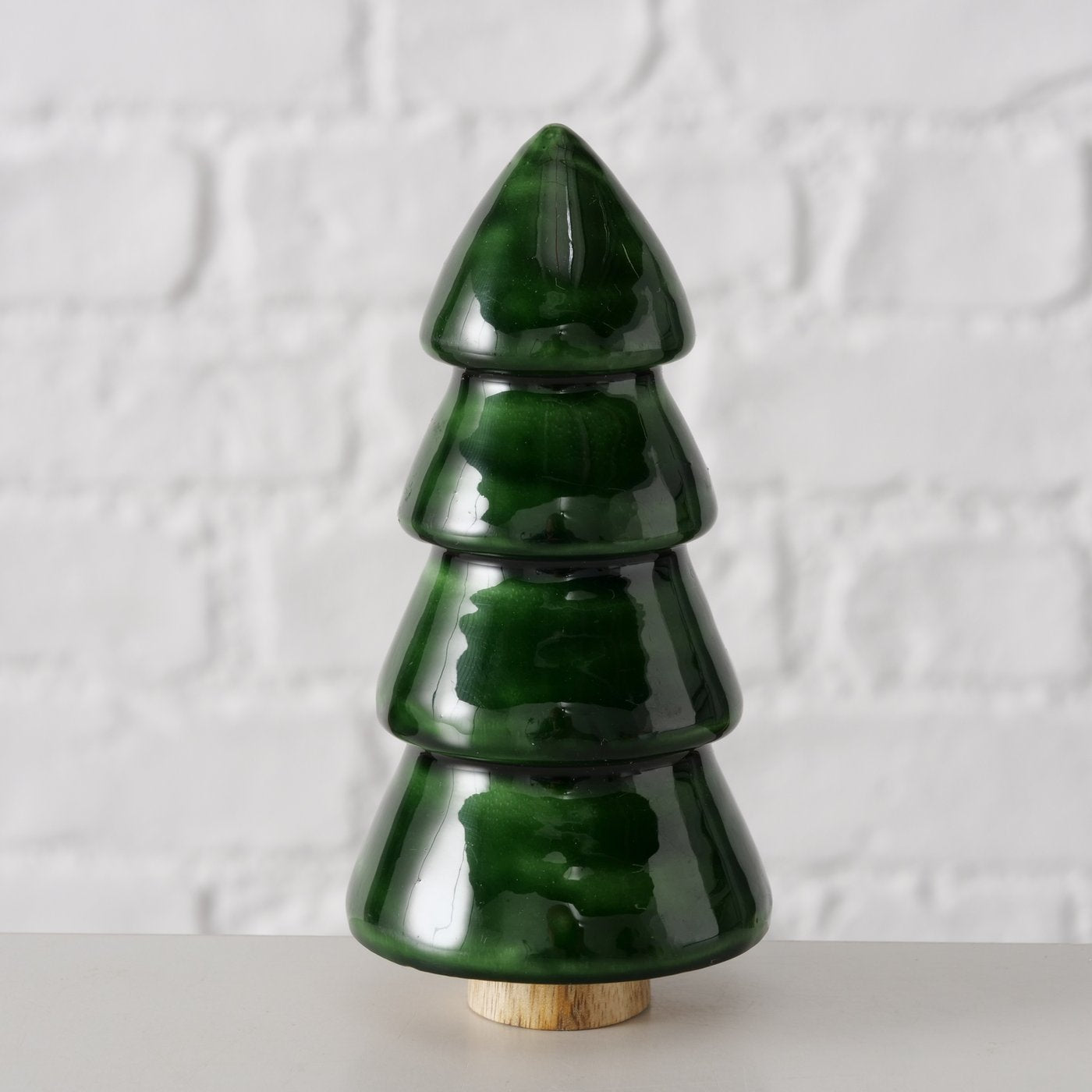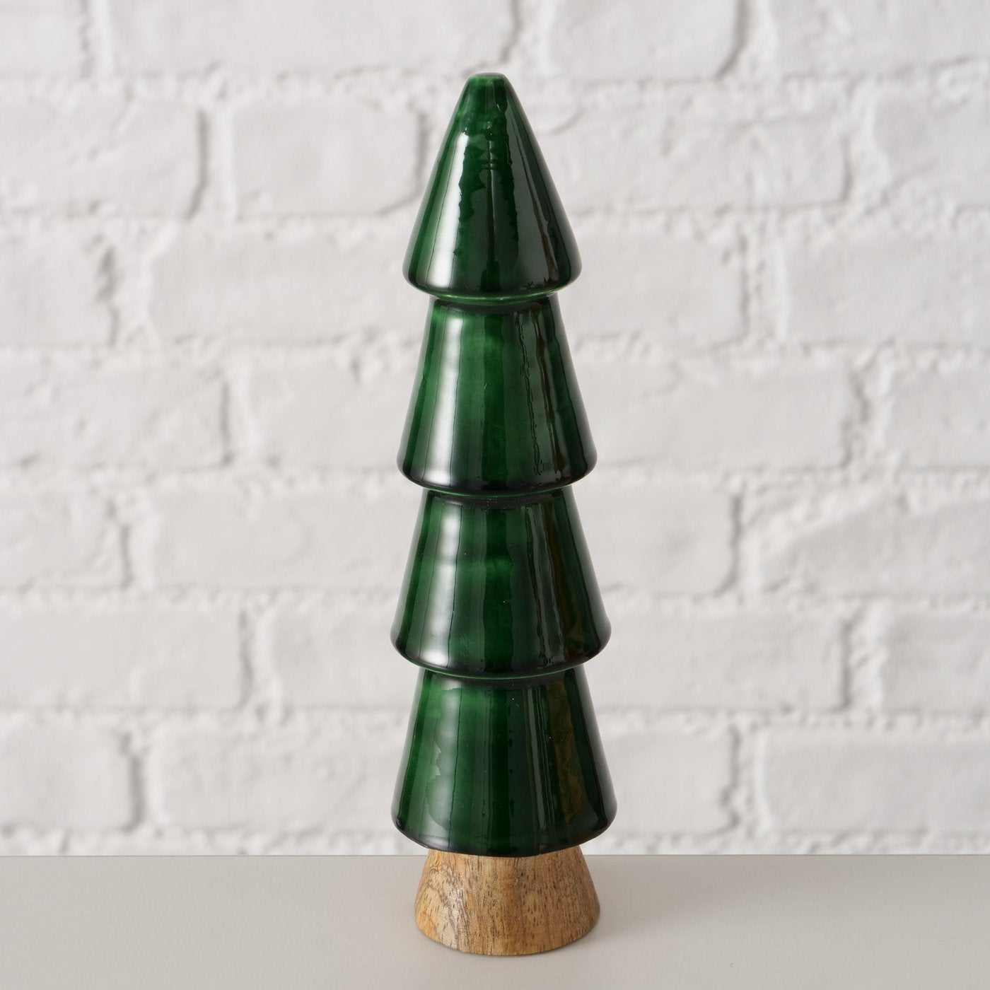 Bringe natürliche Eleganz und festlichen Glanz in dein Zuhause mit diesem handgefertigten Deko-Baum von Boltze. Gefertigt aus hochwertigem Mangoholz und mit einer edlen Emaille-Veredelung versehen, überzeugt dieser Baum durch seine feine Handarbeit und den modernen, einfarbig dunkelgrünen Look.