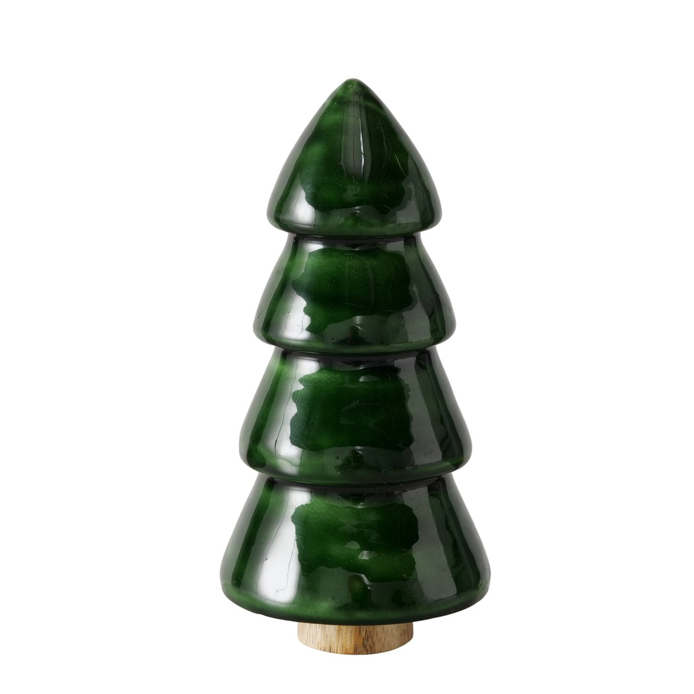 Handgefertigter Deko-Baum aus Mangoholz – Dunkelgrün, emailliert