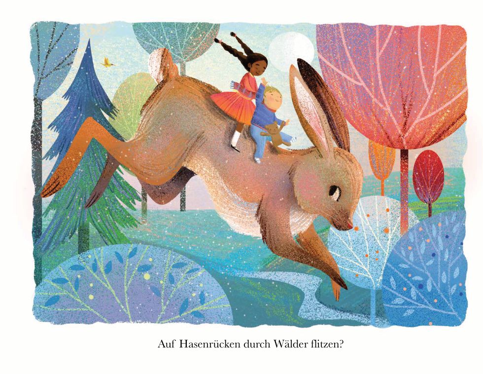 Für die Geschwister, die in diesem fantastischen Bilderbuch ein Buch lesen, sind Worte nicht nur Worte. Hinter jedem von ihnen verbirgt sich ein Geheimnis, auf jeder Seite eine neue Welt: Zu Gast beim einem Drachen knabbern sie an einem Stück Magie. Sie kämpfen gegen Piraten, trinken Tee mit dem Meeresvolk, schließen Freundschaft mit einem Riesen und schauen der Mondmaus beim Polieren der Sterne zu. Das Beste an diesen Abenteuern ist, dass sie nie zu Ende gehen und sie immer wieder aufgeschlagen werden können. Denn auch nach dem Zuklappen des Buchs: Die Geschichten leben und Kopf und Herz weiter!
