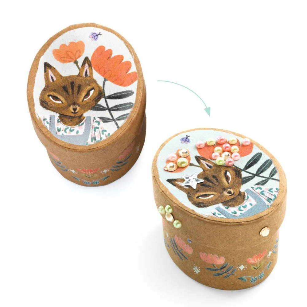 Kleine Schätze brauchen ein funkelndes Zuhause. Mit dem DIY: 5 Mini-Schachteln | Kreativset von Djeco gestalten Kinder ab 6 Jahren fünf liebevoll verzierte Mini-Schachteln – perfekt zum Sammeln, Verschenken oder Dekorieren. Über 200 selbstklebende Edelsteine in Diamant- und Perlmuttoptik lassen jede Box glitzern. Ob Schmuckstück, Glücksbringer oder kleines Geheimnis: In diesen Schachteln ist Platz für das, was Kindern am Herzen liegt.