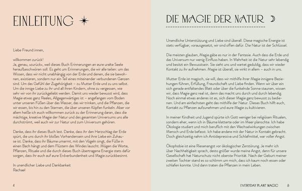 In kurzen Exkursen erfährst du außerdem Nützliches zur Rolle der Mondphasen, der Jahreszeiten oder der Elemente, sowie die Eigenschaften verschiedener Edelsteine, die wichtigsten magischen Accessoires und die Bedeutung der sieben Chakren im Körper. Abgerundet wird der kompakte magische Begleiter von einfach umzusetzenden Ritualen für jeden Tag.