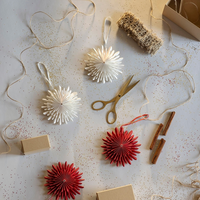 Entdecke die kunstvoll gefertigte Schönheit unserer weißen Papieranhänger in Schneeflockenform. Ihre aufwendige und kompakte Falttechnik verleiht ihnen eine einzigartige Eleganz.