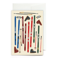 "Ab auf die Piste" möchte man doch am liebsten, wenn man diese coole Retro-Ski Karte sieht! Perfekt für ganz persönliche Grüße an und von Wintersportliebhabern.