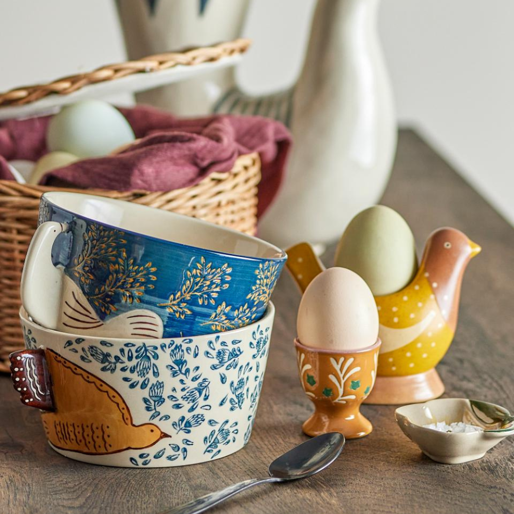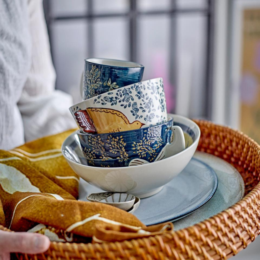 Zarte Linien, sanfte Farben und ein Hauch von Poesie – die Hezha | Steingutschale mit Vogelmotiv von Bloomingville bringt Natürlichkeit und Handwerkskunst auf den Tisch. Aus Steingut gefertigt und liebevoll handbemalt, zeigt sie ein filigranes Vogelmotiv, das wie ein stiller Gruß aus der Natur wirkt.