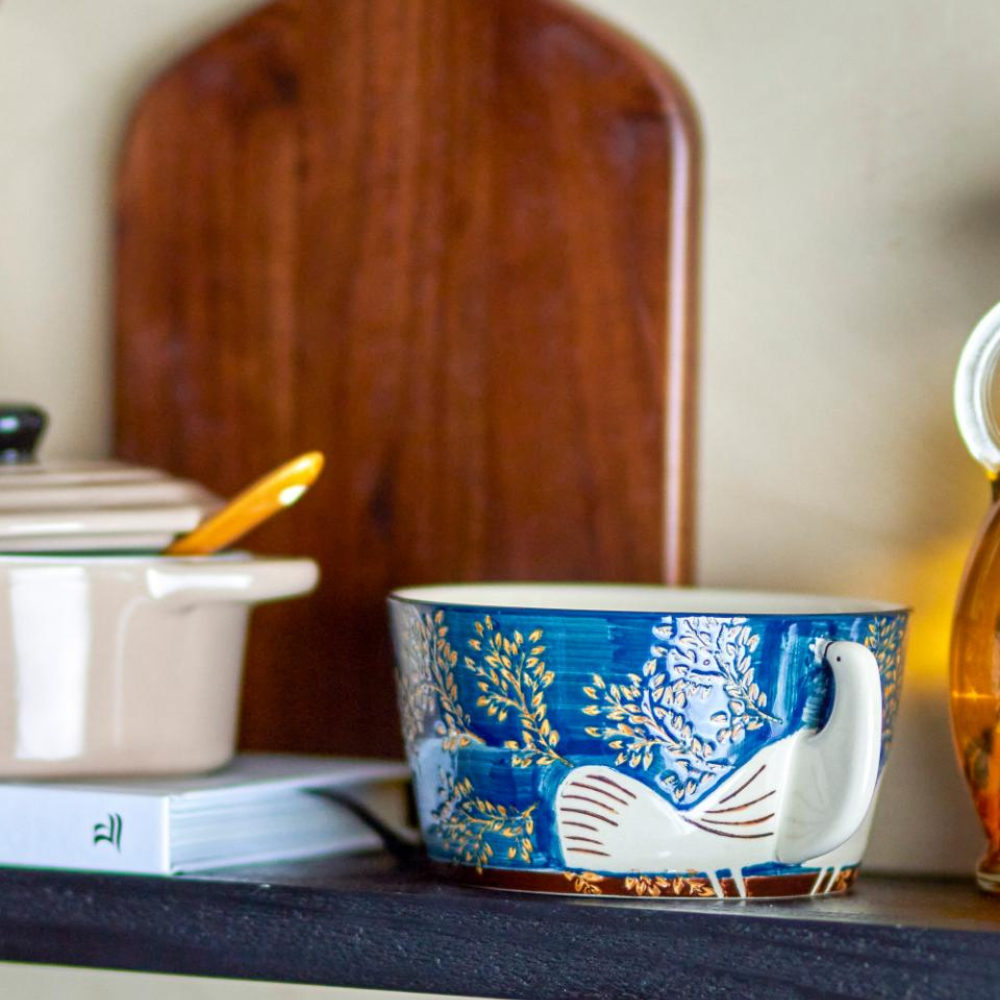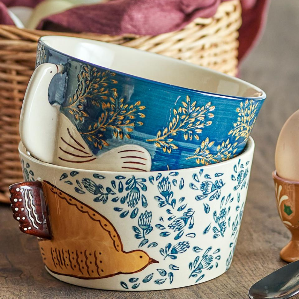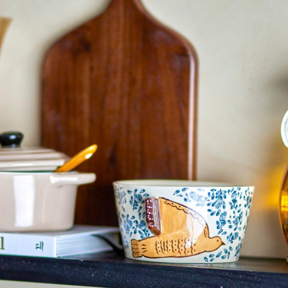 Hezha | Steingutschale mit Vogelmotiv | 2 Varianten