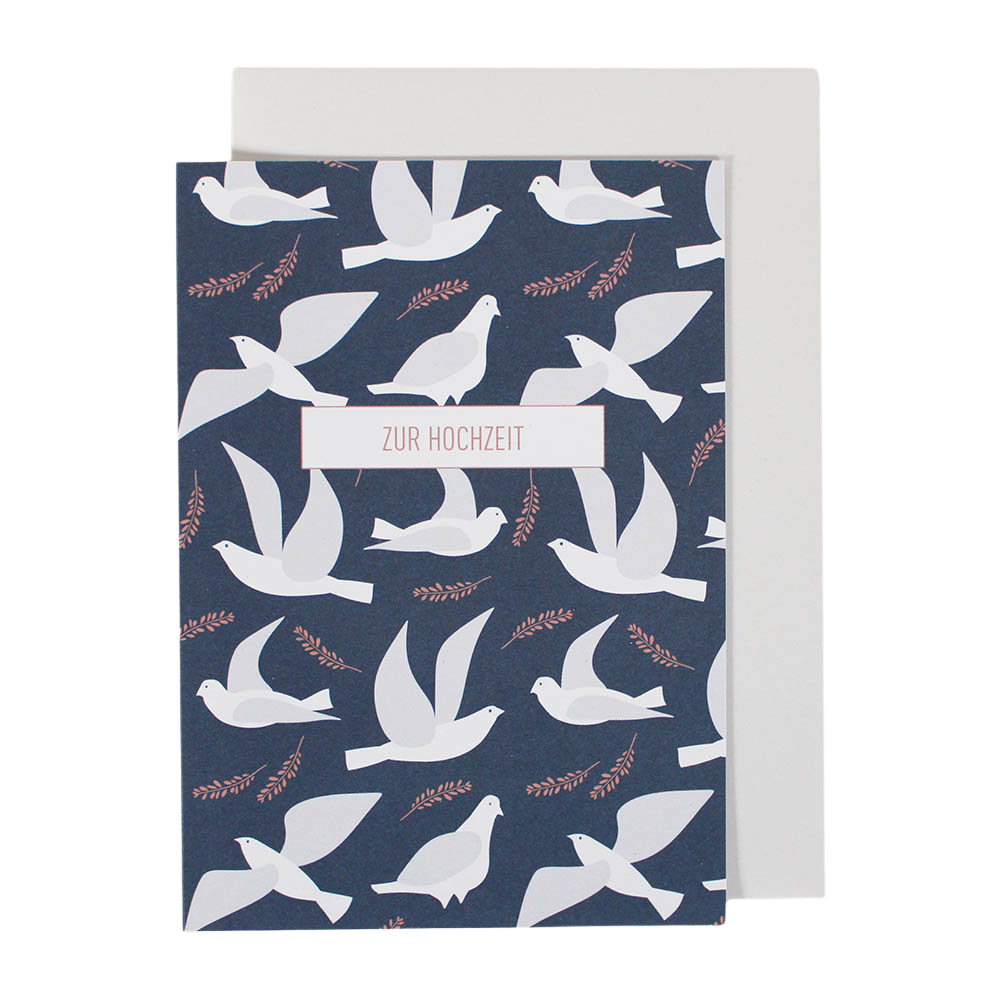 Das liebevoll gestaltete Motiv macht die Karte ideal für Hochzeiten. Der weiße Umschlag aus 100 % Recyclingpapier rundet die hochwertige Optik harmonisch ab.