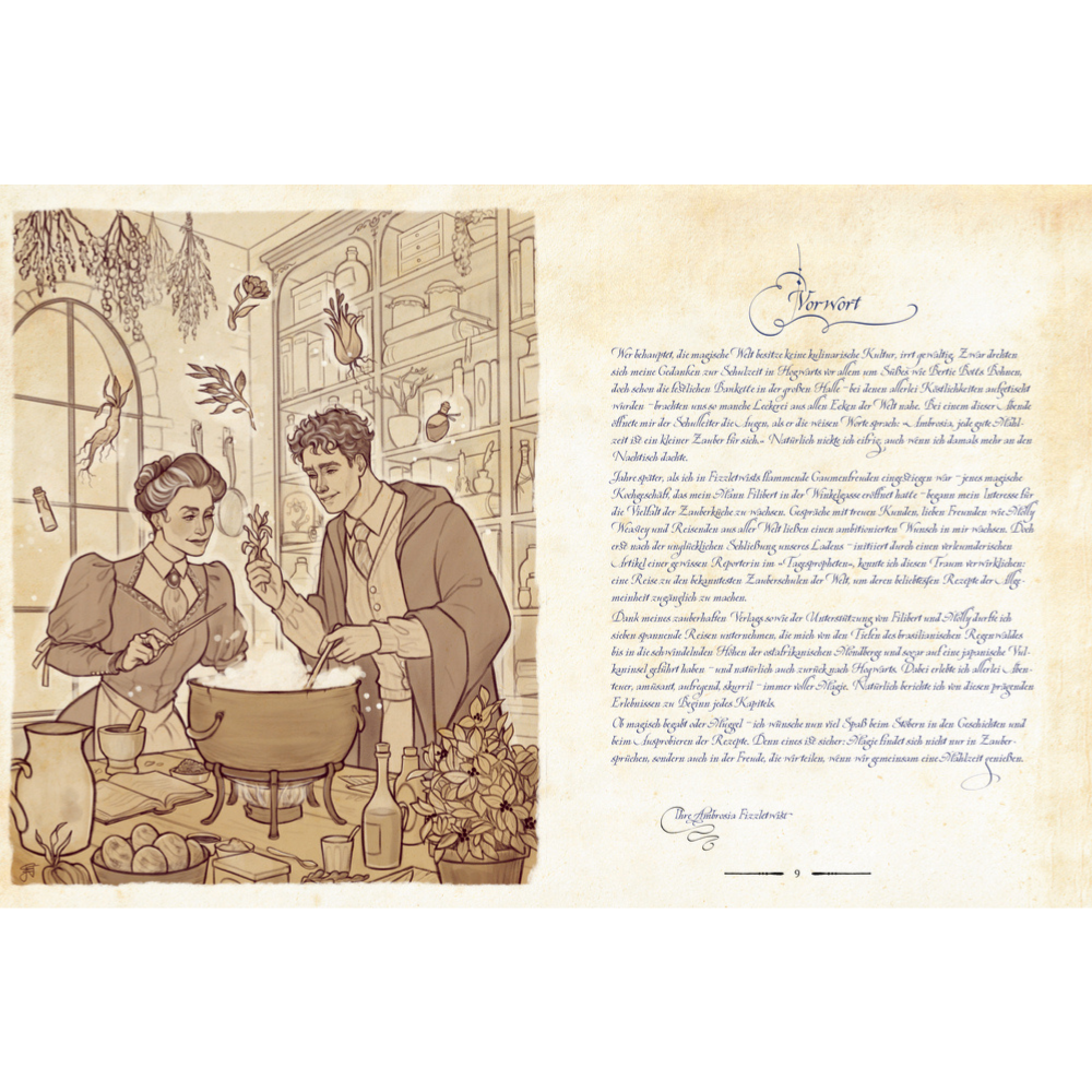 Ob Zaubertrank-Limonade, goldene Kürbispasteten oder funkelnde Desserts – hier treffen Fantasie, Genuss und Kreativität aufeinander. Liebevoll gestaltete Seiten, stimmungsvolle Foodfotografie und eine edle Ausstattung mit Spotlack, Folienveredelung und Folienschnitt machen dieses Buch zu einem echten Sammlerstück – für alle Muggel, Magier und Genießer*innen, die das Außergewöhnliche lieben.