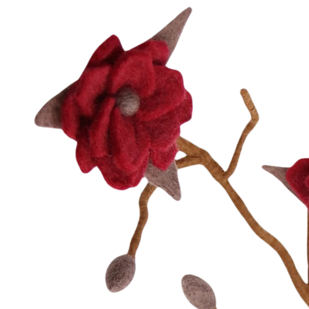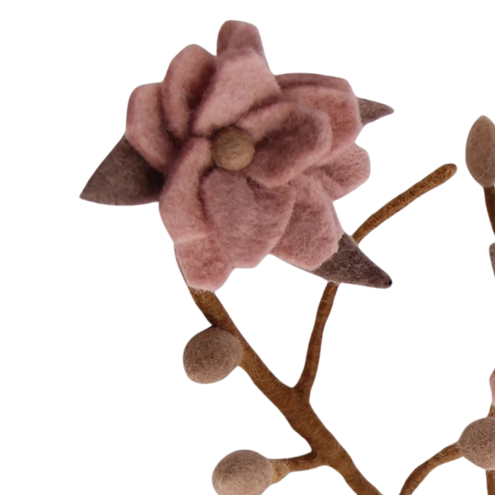 Der Magnolia Branch | Filz-Magnolienzweig bringt die zeitlose Schönheit der Magnolienblüte in dein Zuhause – ganz ohne zu welken. In sorgfältiger Handarbeit aus 100 % reiner Schurwolle gefilzt, trägt der ca. 64 cm lange Zweig üppige Blüten und Knospen, die von grünen Blättern umrahmt werden.