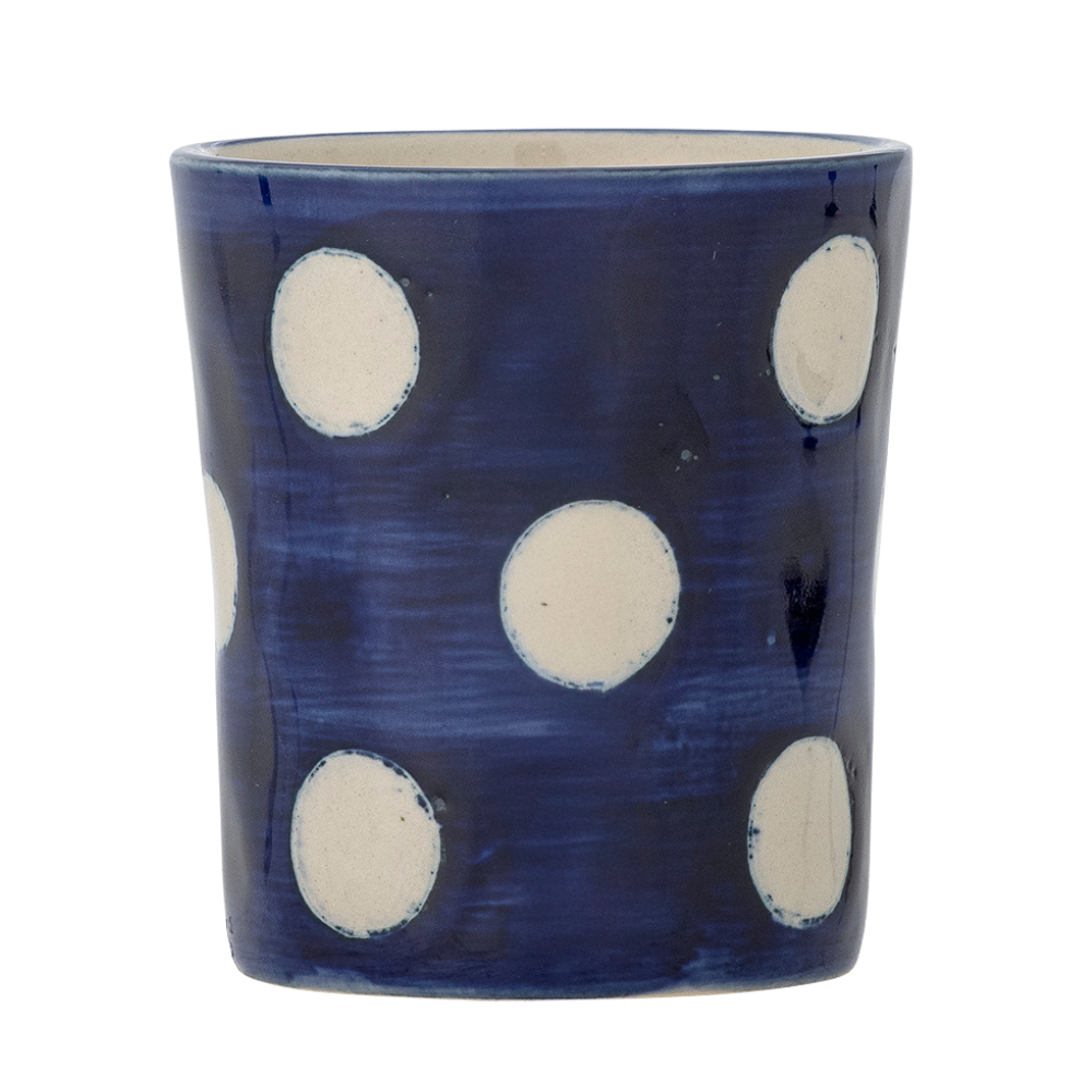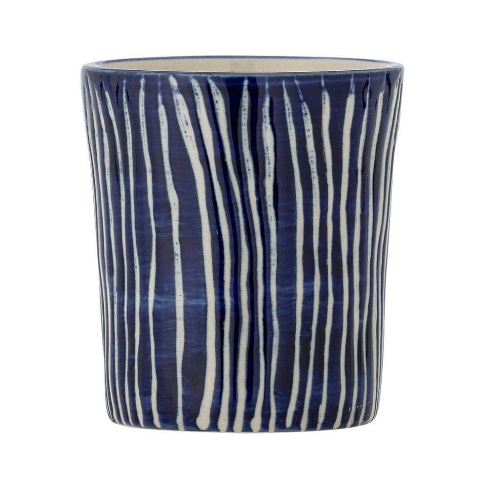 Tiefes Blau, zarte Muster und handwerklicher Charme – die Minoa | Steingut-Tasse, Blau aus der Creative Collection von Bloomingville vereint Funktionalität mit kunstvoller Glasurtechnik. Jede Tasse wird mit der Wax Resist-Technik von Hand dekoriert, sodass kleine Abweichungen in Farbe und Muster jedes Stück zu einem Unikat machen.