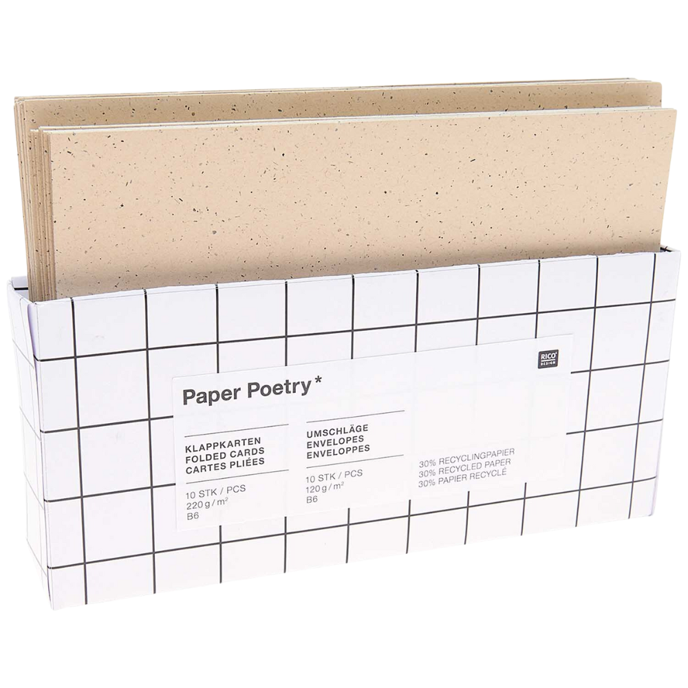 Zeit für Worte, die bleiben – das Paper Poetry | Kartenset vereint edle Farben, feine Papierstruktur und hochwertige Verarbeitung in einer stilvollen Box. Mit 30 % Recyclinganteil erhält das Papier eine natürliche Maserung, die jedem Gruß, jeder Einladung und jeder Danksagung einen besonderen, zeitgemäßen Look verleiht.