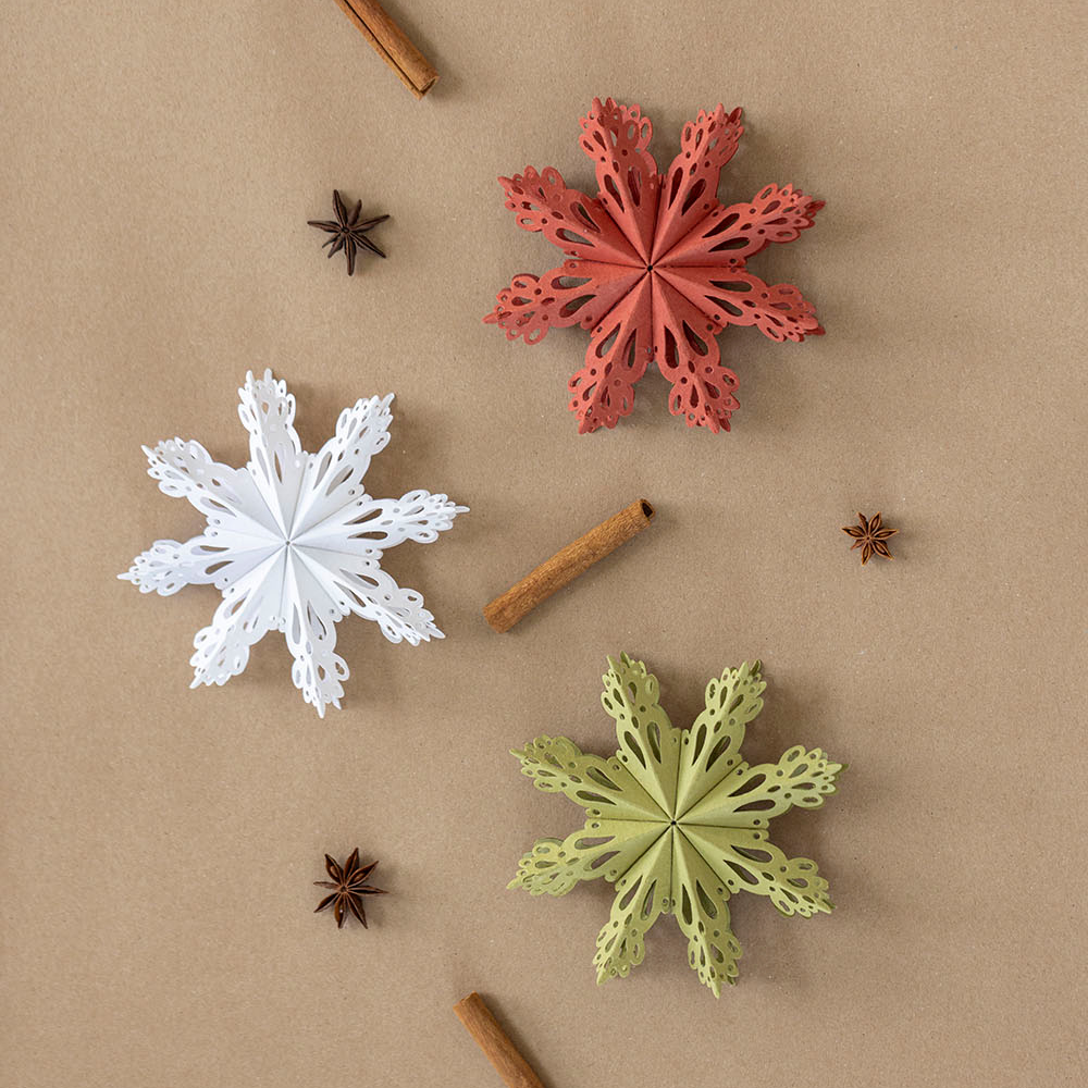 Tauche ein in die winterliche Magie unserer Papieranhänger in Schneeflockenform –bezaubernde Dekoaccessoires, die Deinem Raum eine festliche Atmosphäre verleihen.