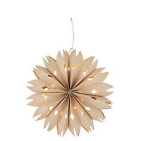 Mit diesem leuchtenden Papierstern mit 15 LED-Lichtern kannst Du Dein Zuhause wunderschön weihnachtlich dekorieren. Die 2 CR2032 Batterien sind inklusive.