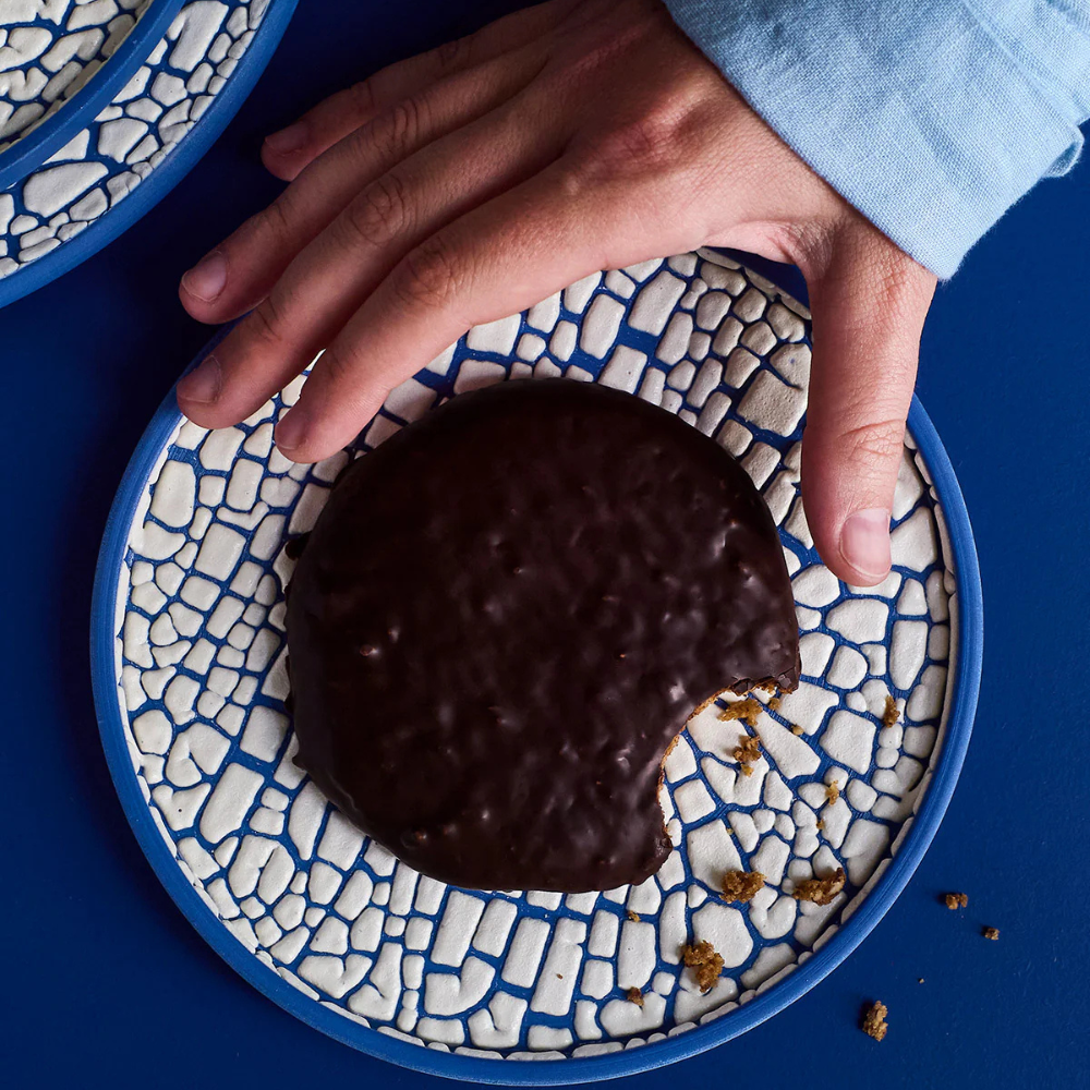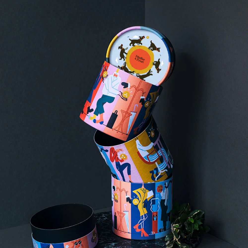 Fünf saftige, vegane Elisen, umhüllt von feinem Zuckerguss oder dunkler Schokolade, treffen auf kunstvoll gestaltete Dosen, die fast zu schön sind, um sie zu verschenken. Ob die verspielten Charaktere des Londoner Illustrators Alec Doherty oder die traumhafte Fantasiewelt von Charlotte Dumortier – beide Editionen sind Liebeserklärungen an das Schenken selbst.