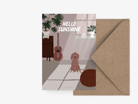Sonnengrüße mit Wau-Faktor. Sonne, Hunde, gute Laune: Postkarte HELLO SUNSHINE von typealive ist wie ein Spaziergang im Sonnenschein – leicht, fröhlich und mit tierisch viel Charme. Perfekt für alle, die ihren Lieblingsmenschen ein bisschen Alltagsfreude in den Briefkasten zaubern wollen.
