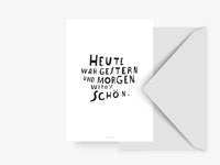 Worte, die Hoffnung schenken. Manchmal braucht es genau diesen Gedanken: Es wird wieder schön. Die Postkarte HEUTE von typealive trägt diese kleine Portion Zuversicht in klarer Typografie – für alle, die gerade durch schwere Tage gehen oder einen Lichtblick gebrauchen können.