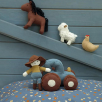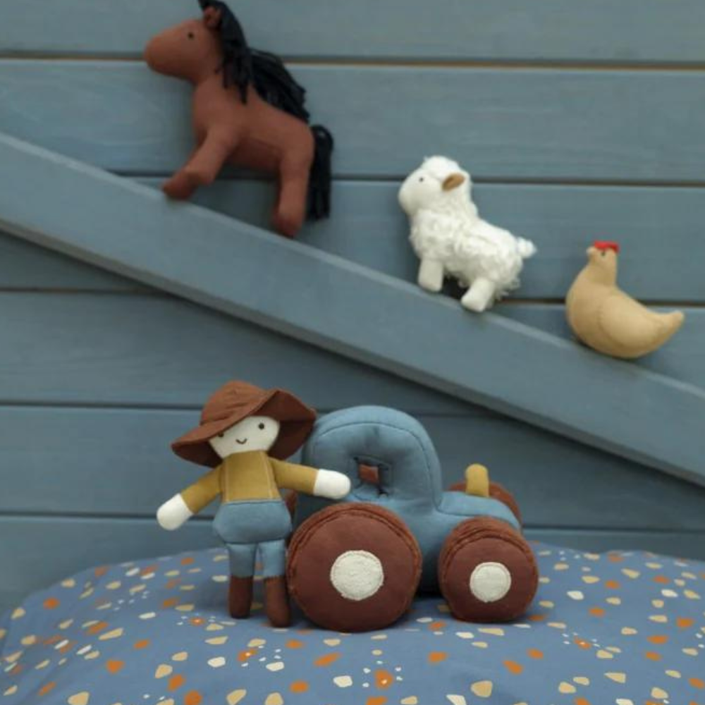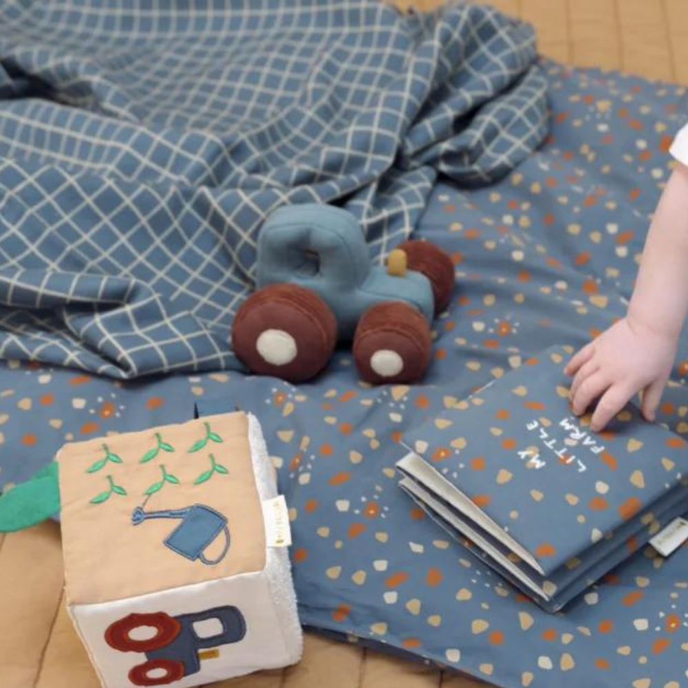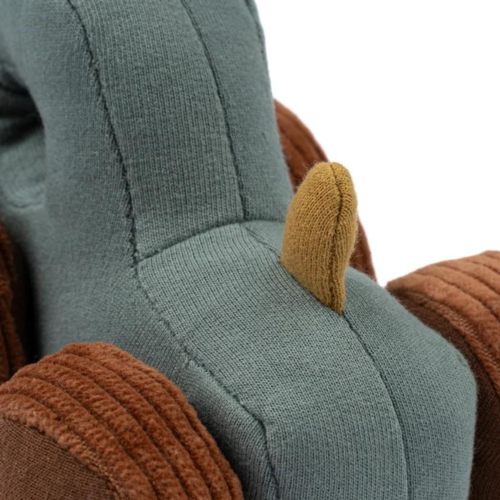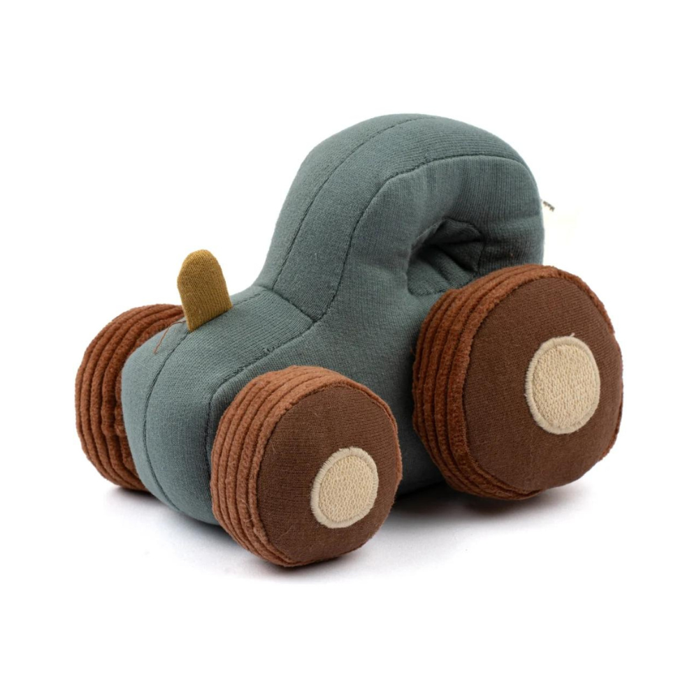 Die Rassel TRAKTOR ist leicht für kleine Hände zu halten und zu greifen. Der Stoff aus Bio-Baumwolle bietet eine weiche und taktile Textur, die es Ihrem Baby ermöglicht, verschiedene Empfindungen zu erkunden, während es die Rassel greift und schüttelt.