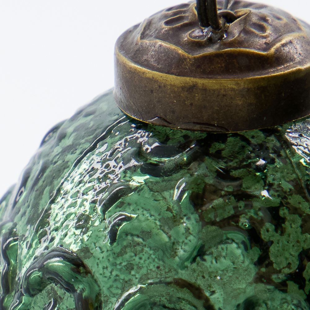 Jede Kugel wird von Hand aus Glas gefertigt und trägt ein dezentes Reliefmuster mit zartem Vintage-Charme. Die warm schimmernden Messingdetails fangen das Licht ein und verleihen deinem Baum, Kranz oder Tischarrangement eine ruhige, elegante Note.
