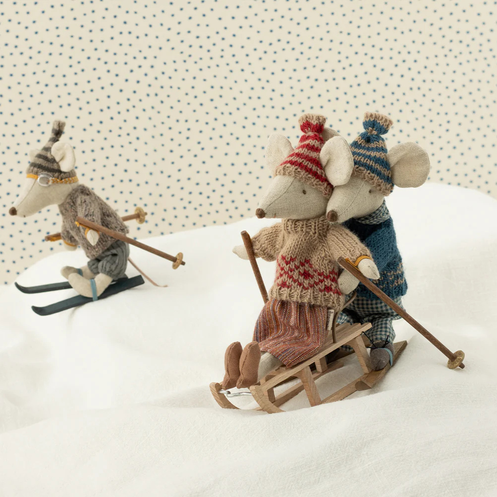 Wenn die ersten Schneeflocken fallen, beginnt für die Maileg-Mäuse die schönste Zeit des Jahres: Rodeln, lachen, durch den Winter wirbeln. Der kleine Schlitten, Maus | Maileg Zubehör ist dafür wie geschaffen – detailverliebt gearbeitet, stabil und mit einer feinen Schnur versehen, um ihn sanft durch den Schnee zu ziehen.