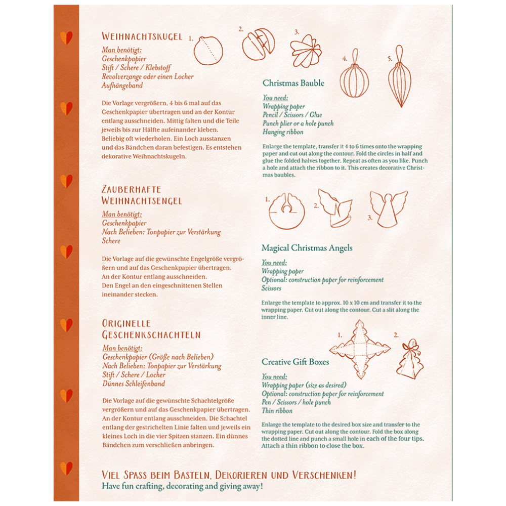 • Inhalt: 10 Geschenkpapiere, 2 DIY-Seiten, Geschenkanhänger