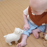 Die kuschelige Sherpa-Oberfläche lädt zum Greifen, Fühlen und Schmusen ein, während der sanfte Klang im Inneren die Neugier weckt und spielerisch die Sinne fördert. In natürlichen Farben gehalten, passt Sheep Sam wunderbar in jedes Zuhause und wird schnell zum ersten treuen Freund.