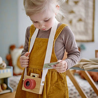 Lass Dein Kind die Welt durch die Augen der Spielzeugkamera von Bloomingville MINI entdecken! Aus FSC-zertifiziertem Holz gefertigt, bietet diese Kamera viel Kreativität und Spaß. Mit 4 kleinen Bildern, die auf beiden Seiten bedruckt sind, ergeben sich insgesamt 8 verschiedene Motive - perfekt, um die Welt aus einer anderen, spannenden Perspektive zu erleben. Ganz entspannt auch unterwegs, denn die Kamera kann man sich einfach um den Hals hängen!