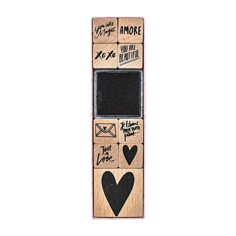 Wenn Worte zu Herzenstempeln werden. Das Stempelset IT MUST BE LOVE von Paper Poetry ist eine Liebeserklärung an alle, die mit Papier und Herz gestalten. Ob für Einladungen, Geschenkanhänger oder kleine Botschaften – mit diesen 9 liebevoll gestalteten Holzstempeln und dem passenden schwarzen Stempelkissen zauberst du im Handumdrehen persönliche Highlights. Von zarten Herzen bis zu romantischen Schriftzügen – hier wird jeder Abdruck zum Gefühl.