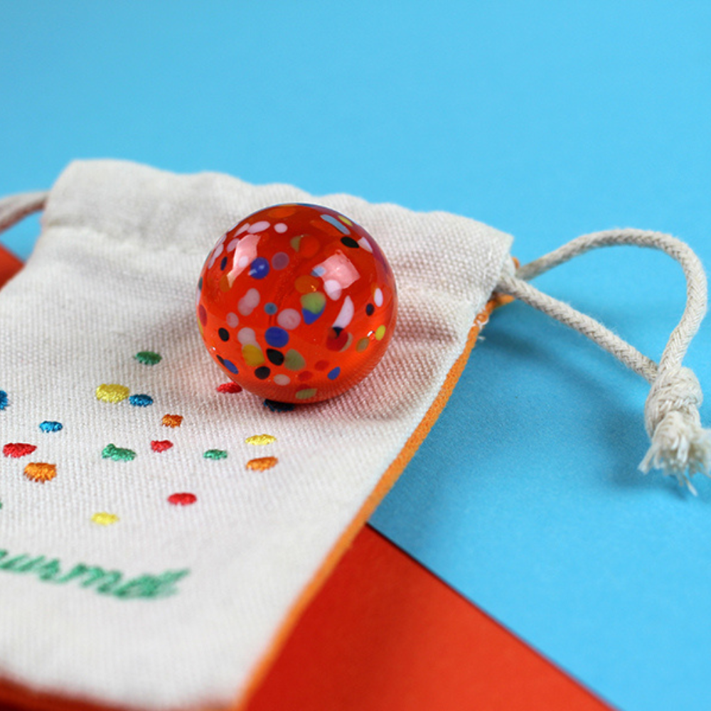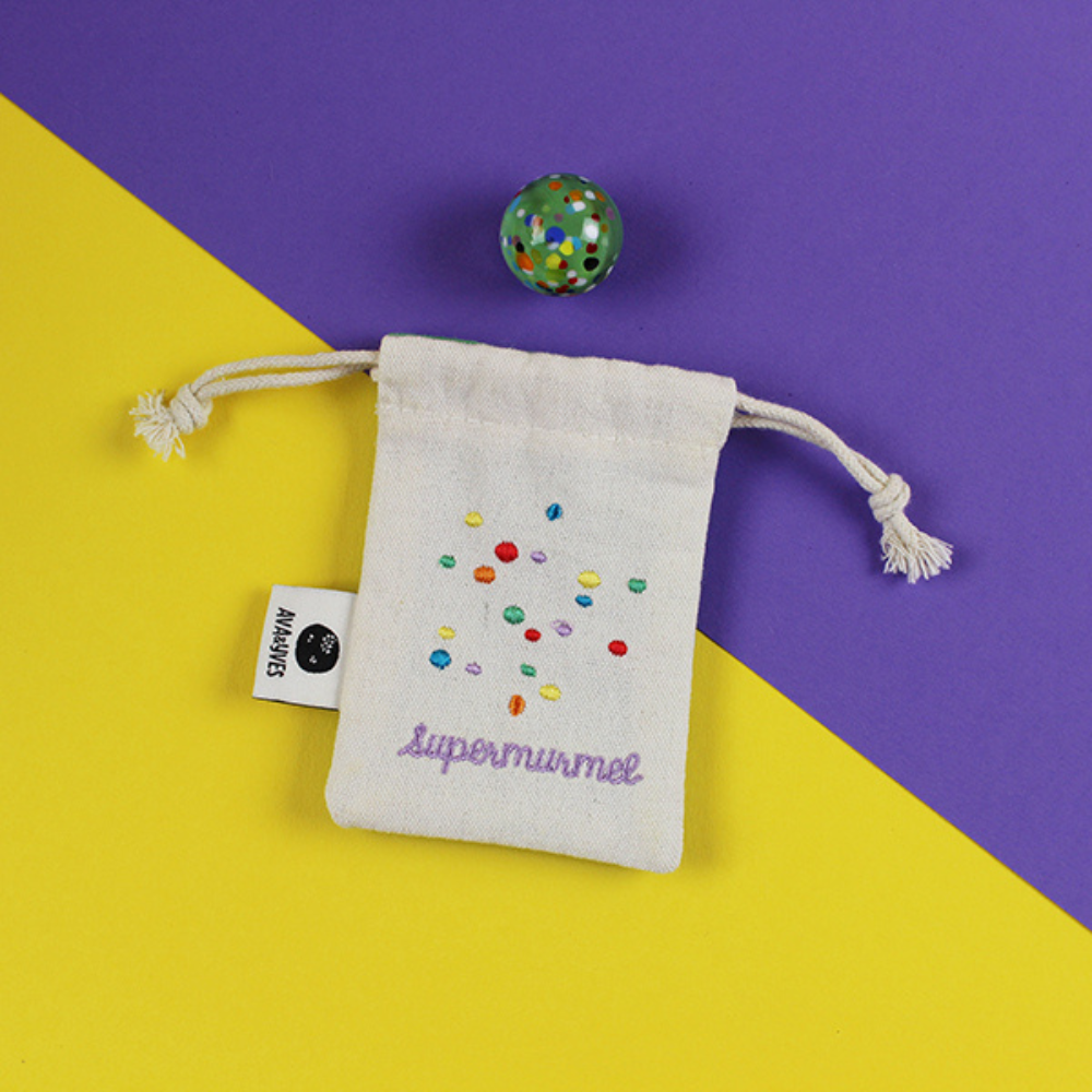 Klein, rund und voller Magie – die Supermurmel ist nicht nur eine Murmel, sondern ein echtes Glückssymbol. Gefertigt aus edlem Muranoglas und verpackt in einem liebevoll bestickten Baumwollbeutel, wird sie zum besonderen Schatz für kleine und große Hände.