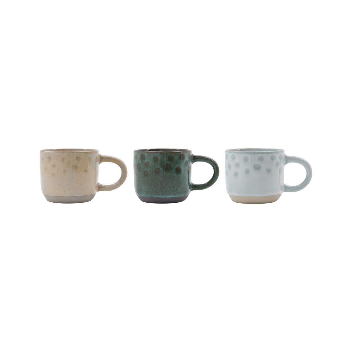Genieße Deinen Kaffee, Tee und heiße Schokolade mit dieser aus Steingut handgefertigten Tasse LIKE. Mit großen Griffen für Komfort, einem sandgestrahlten Boden und schönen Punktdetails verleiht jeder Becher Deinem Kaffeetisch einen farbenfrohen und einladenden Touch. Variationen im Design machen jedes Stück einzigartig.