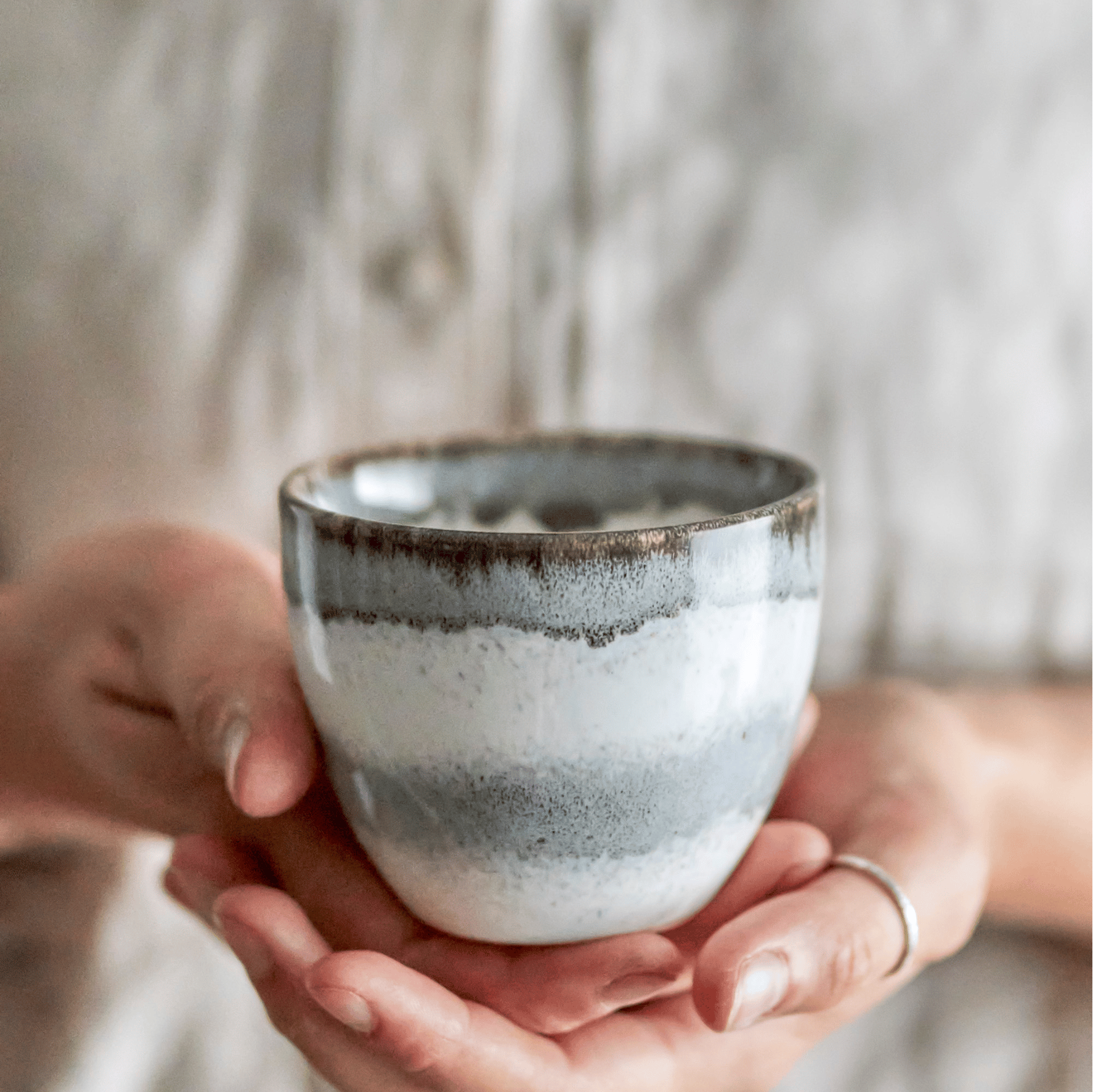 Aufgrund der Beschaffenheit der Glasur wird jede Tasse variieren und einzigartig sein.