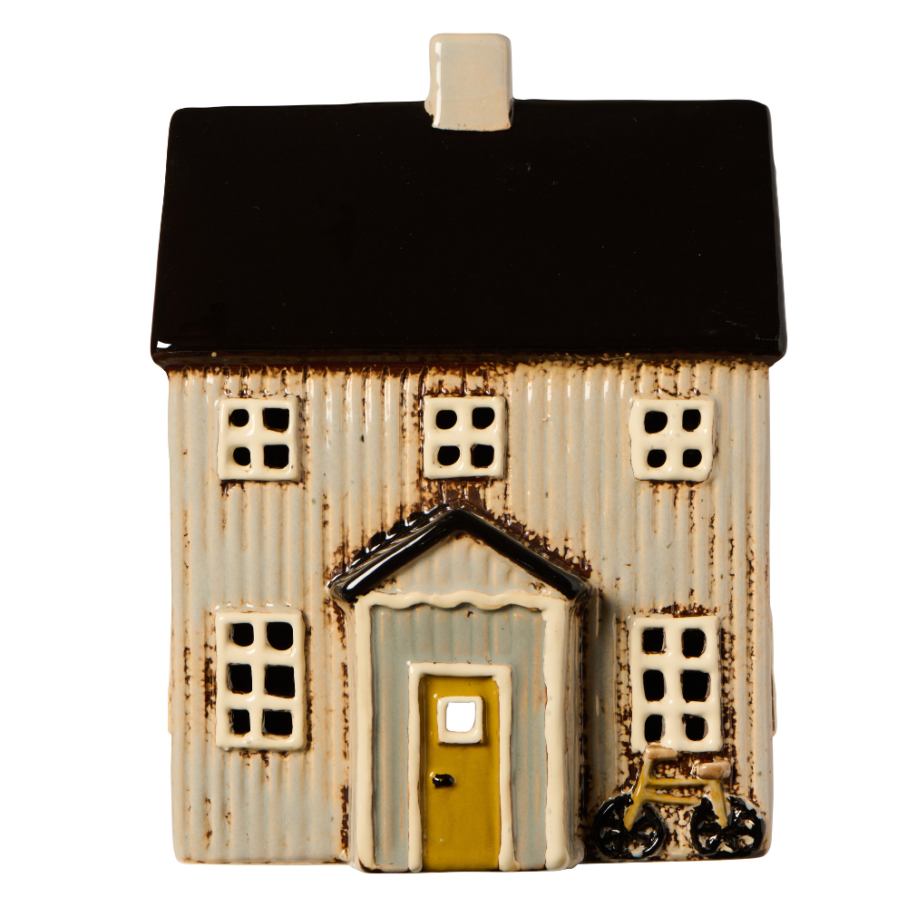 Ein Haus, zwei Geschichten – das Teelichthaus VISBY bringt nordisches Flair und stimmungsvolle Gemütlichkeit in dein Zuhause. Aus glasiertem Steingut handgearbeitet, glänzen die feinen Details wie die warme, braune Tür, zarte Fensterrahmen und bei einer Variante ein charmantes Fahrrad-Relief. Die offene Rückseite lässt sanftes Licht durch, sobald ein LED-Teelicht oder Lichterkette für zauberhafte Stimmung sorgt.