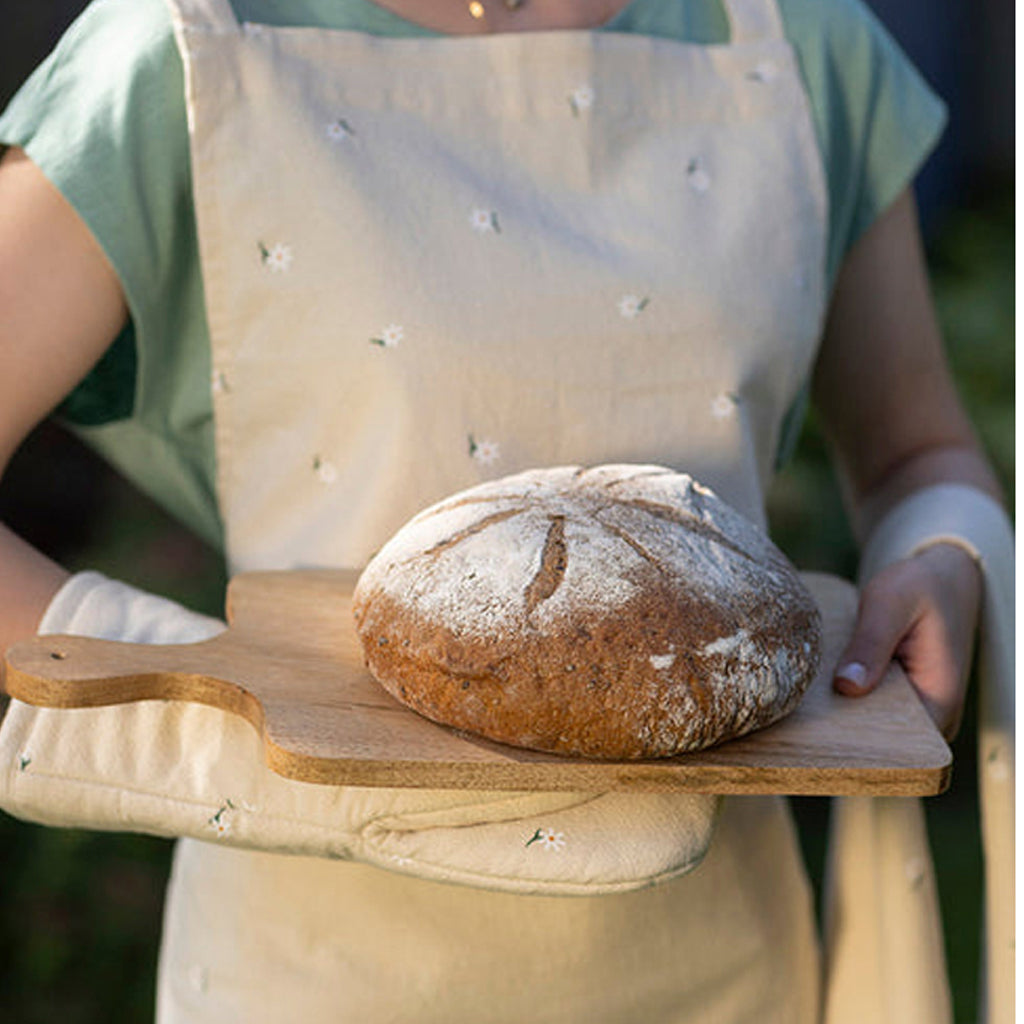 Passend zur Schürze sind auch Geschirrtuch, Topflappen und Ofenhandschuh im gleichen Design erhältlich – perfekt aufeinander abgestimmt für ein stimmiges Gesamtbild.