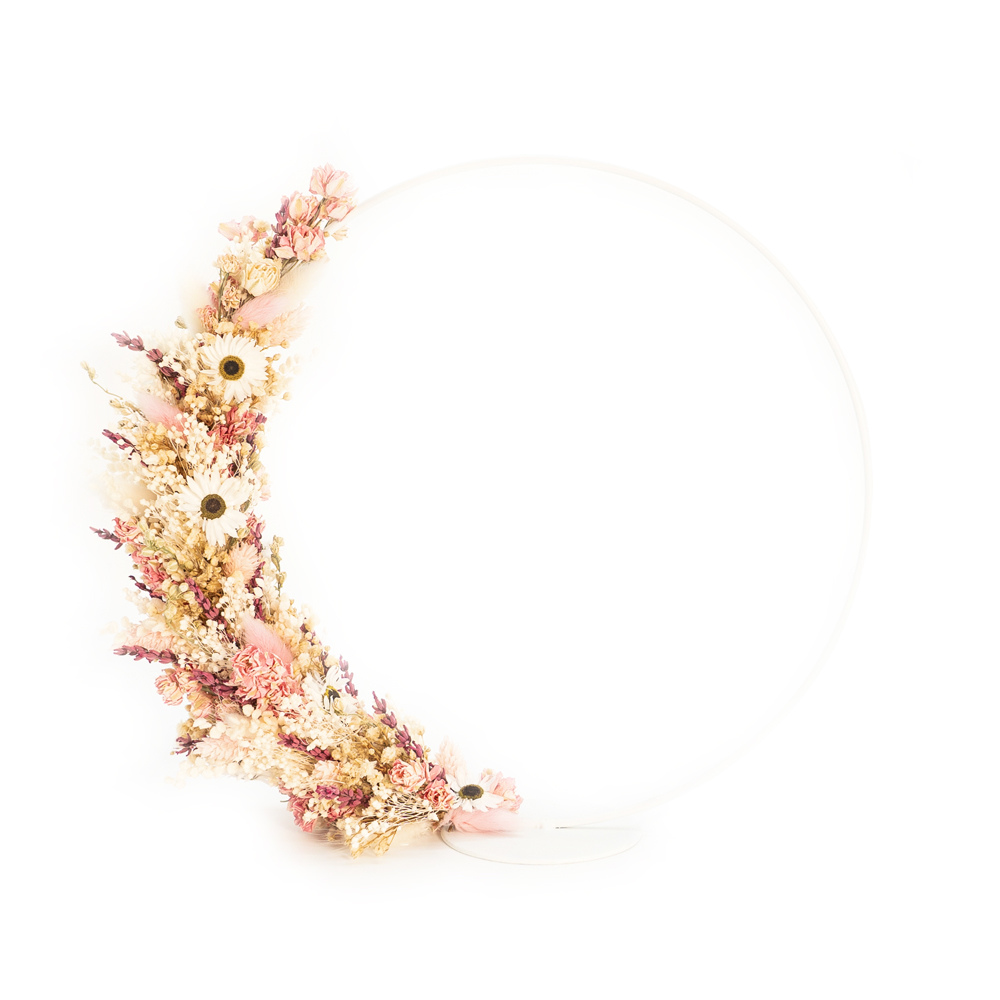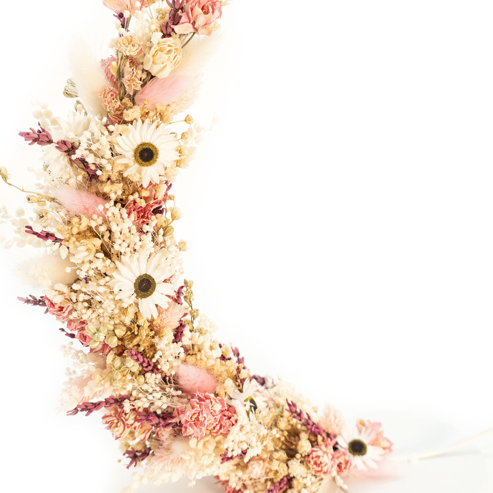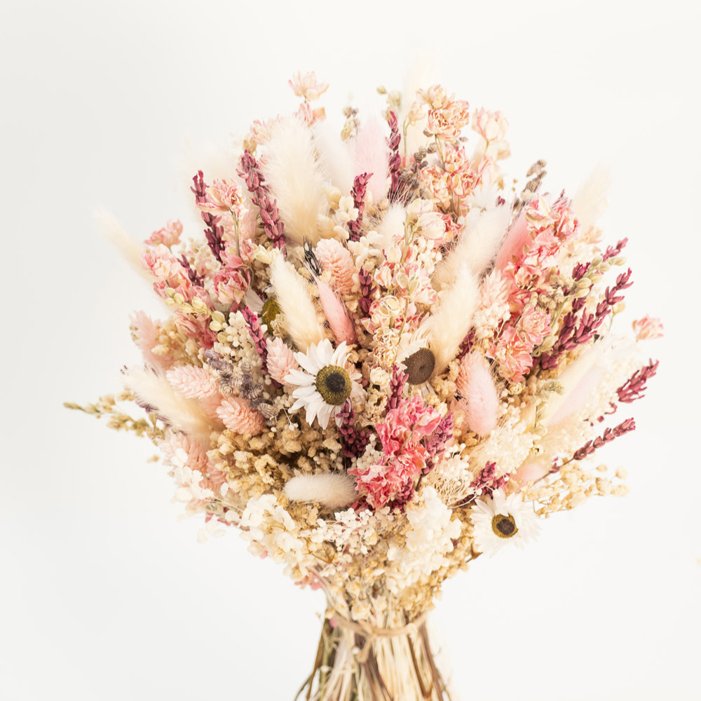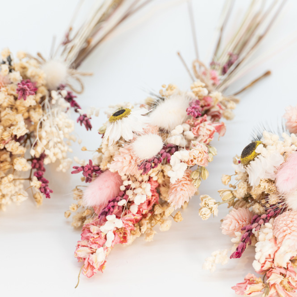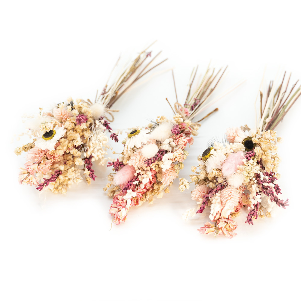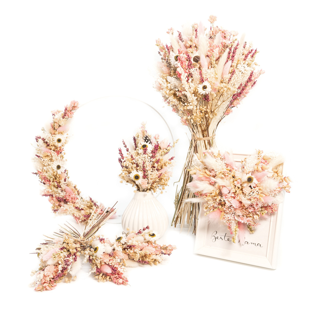 Farbwelt der Trockenblumenkollektion: rosa, gelb, naturweiß