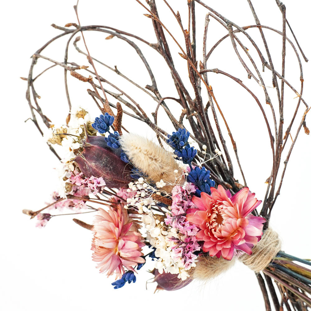 Hauptsächlich verwendete Trockenblumen: Lavendel, Schleierkraut, Nigella, Birke