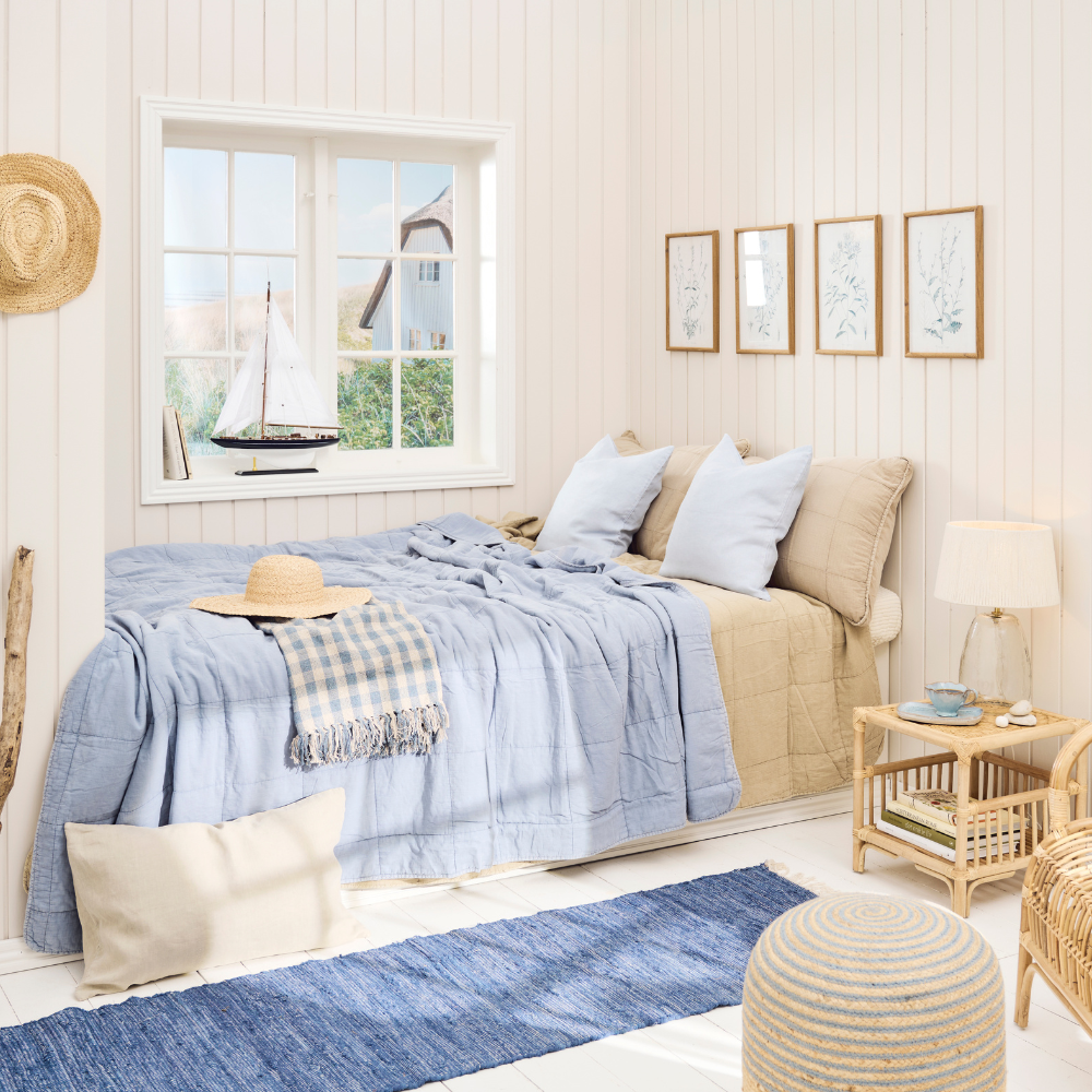 Jeder Quilt wird aus 100 % Baumwolle gefertigt und im Stonewashed-Verfahren veredelt. Dadurch entsteht die charakteristische, leicht unregelmäßige Struktur – weich im Griff, authentisch im Look und von Natur aus einzigartig. Mit ihrer großzügigen Größe von 240 × 240 cm eignet sie sich perfekt als Tagesdecke für Doppelbetten: Sie schützt, schmückt und schafft im Handumdrehen Ordnung und Geborgenheit.