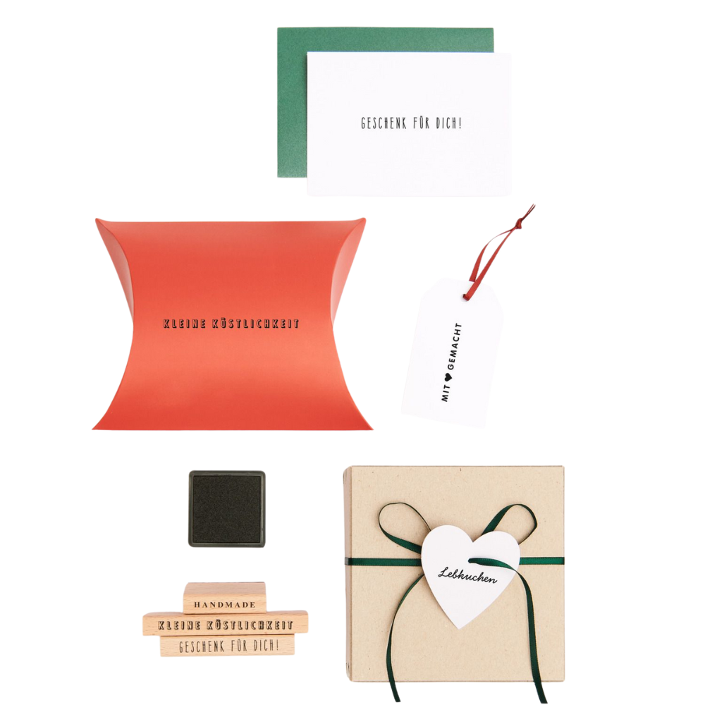 22 detailreiche Schriftzüge, die von „Zimtzauber“ bis „Fröhliche Weihnachten“ reichen, bringen eine persönliche Note auf Geschenkanhänger, Verpackungen oder Weihnachtskarten. Dazu gibt’s ein kleines Herz-Motiv für den Extra-Portion Liebe und ein schwarzes Stempelkissen, mit dem du sofort loslegen kannst.