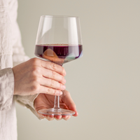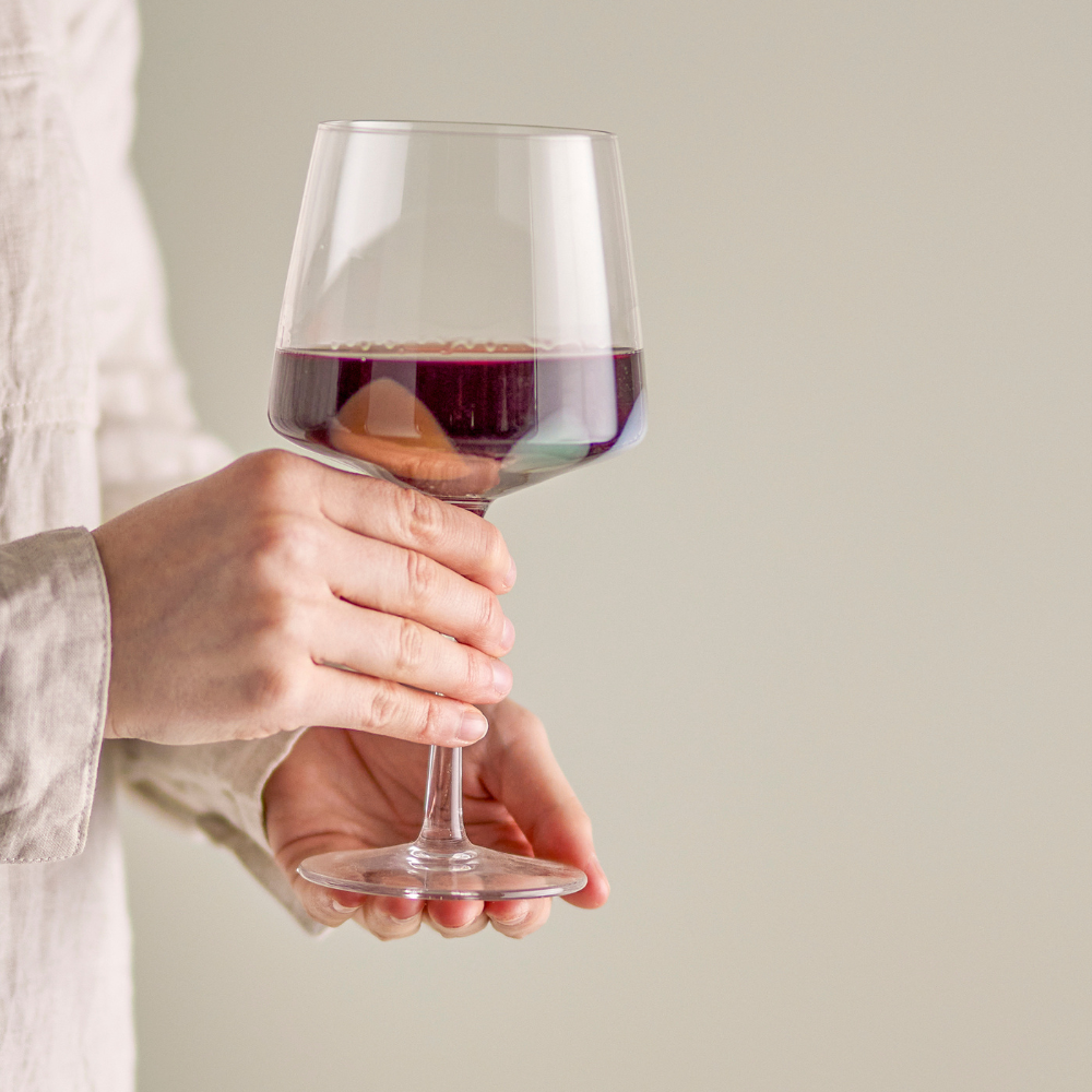 Das Weinglas GILDOR von Bloomingville ist mundgeblasen, mit farbigen Glasstropfen, die im klaren Glas eingebettet sind.