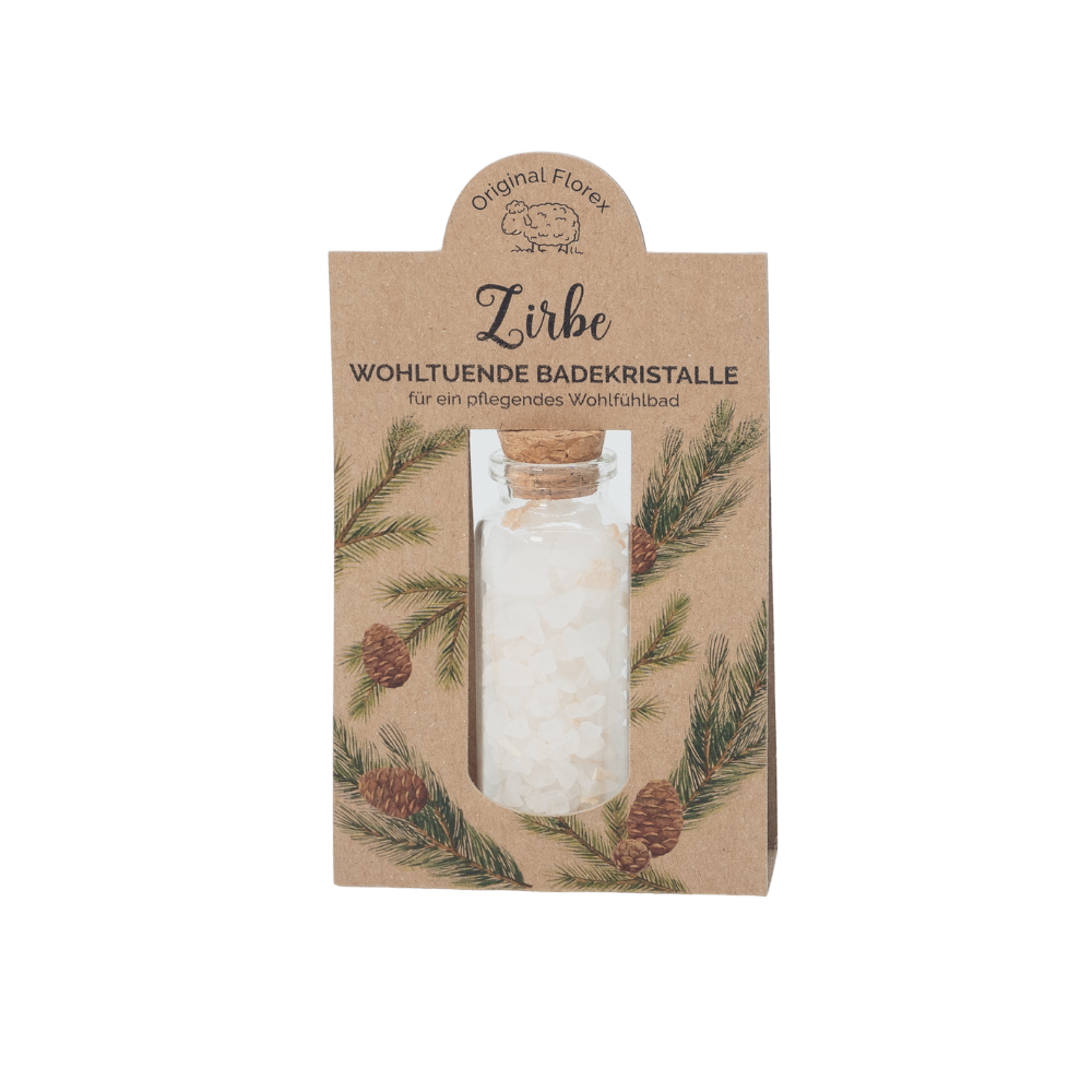 Die grobkörnige Salzstruktur wirkt pflegend und belebend, während der klare, holzige Duft der Zirbe Körper und Geist zur Ruhe bringt. Stilvoll verpackt im Gläschen mit Korkverschluss – perfekt als Geschenk, für unterwegs oder als Mini-Wellnessmoment zwischendurch.