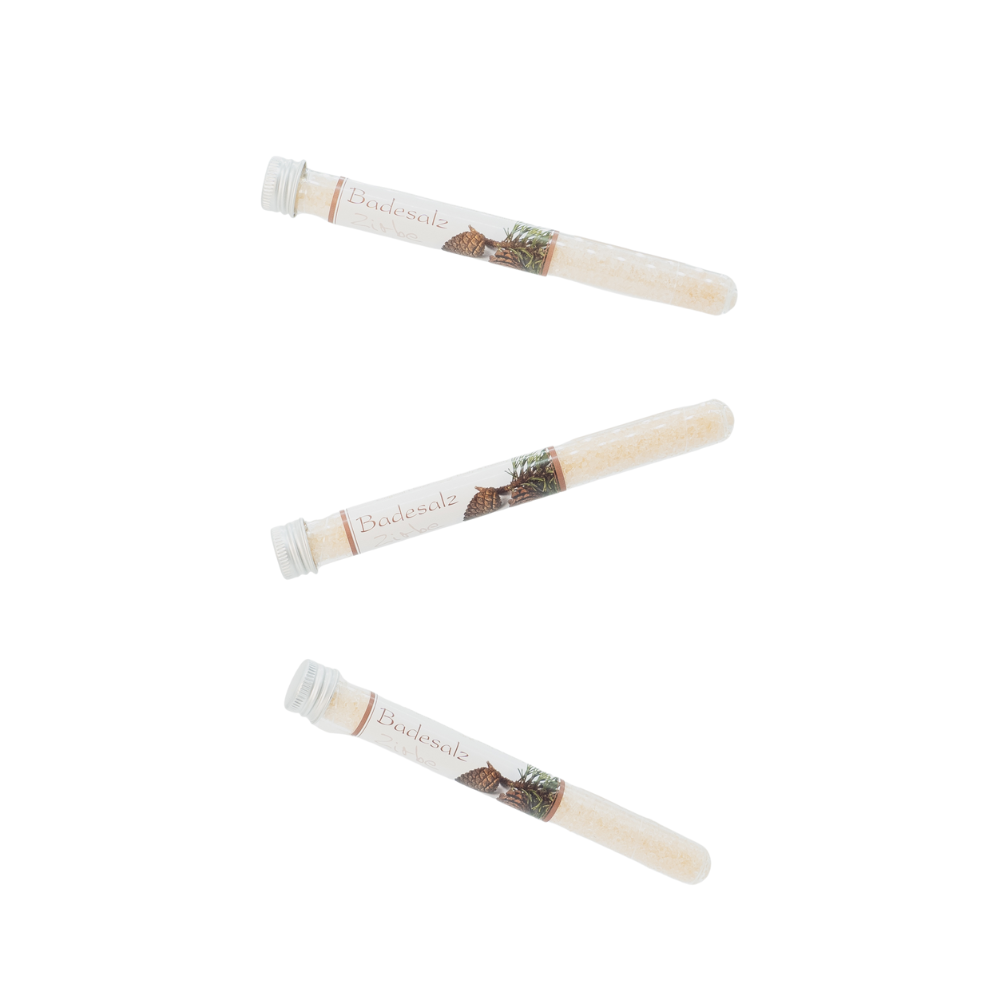 Ein Hauch Alpenluft für deine Badewanne: Das Wohlfühlzeit | Badesalz Zirbe in der Phiole vereint pflegende Reinigung mit dem klaren, beruhigenden Duft der Zirbe. Ideal für kleine Auszeiten – ob als Mini-Vollbad, Fußbad oder liebevolles Mitbringsel.