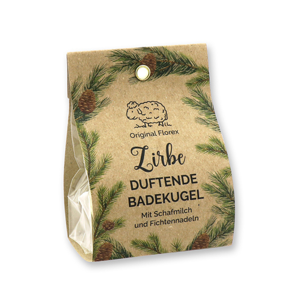 50 g Badebutter-Kugel Zirbe mit Fichtennadeln – wahlweise einzeln oder in Geschenkverpackung