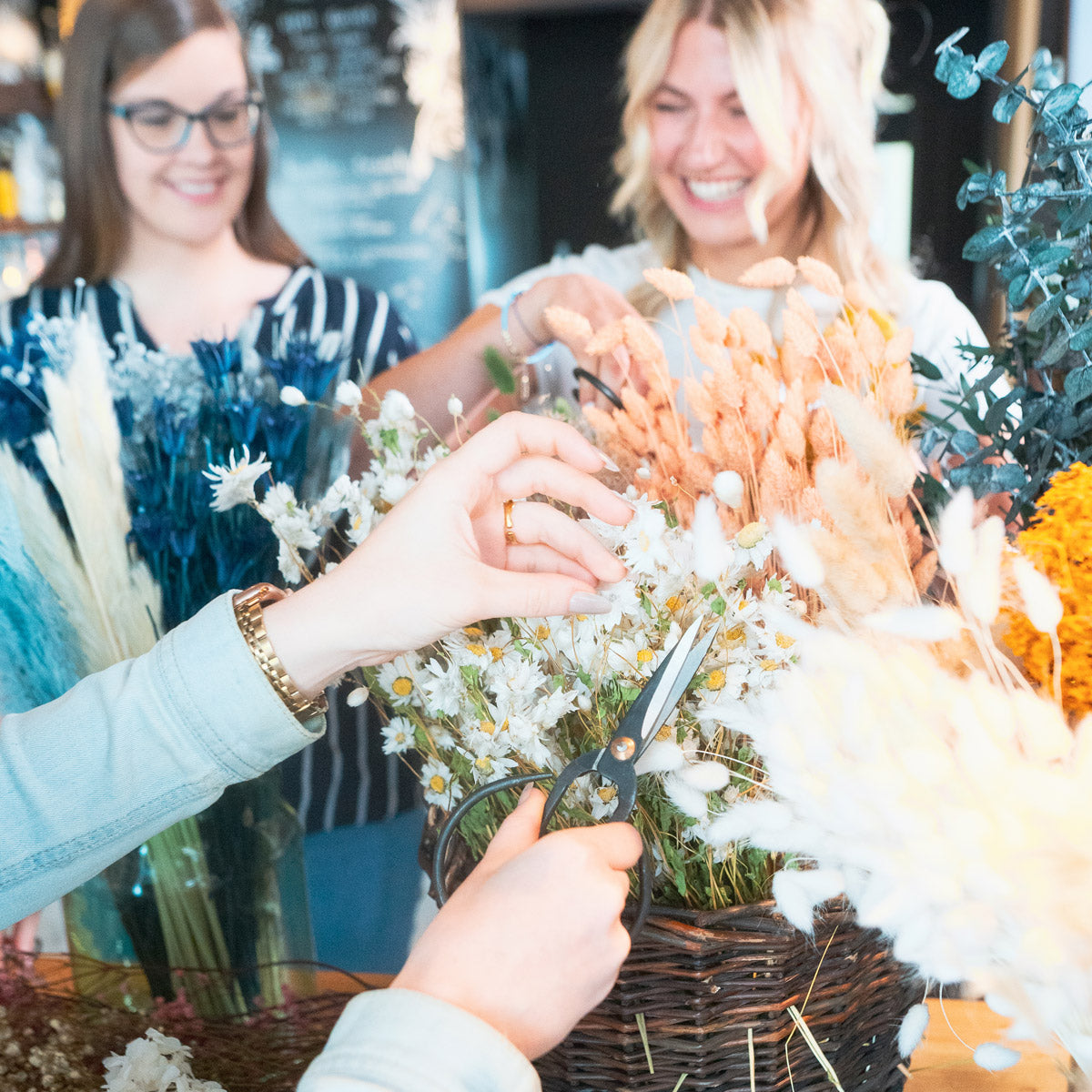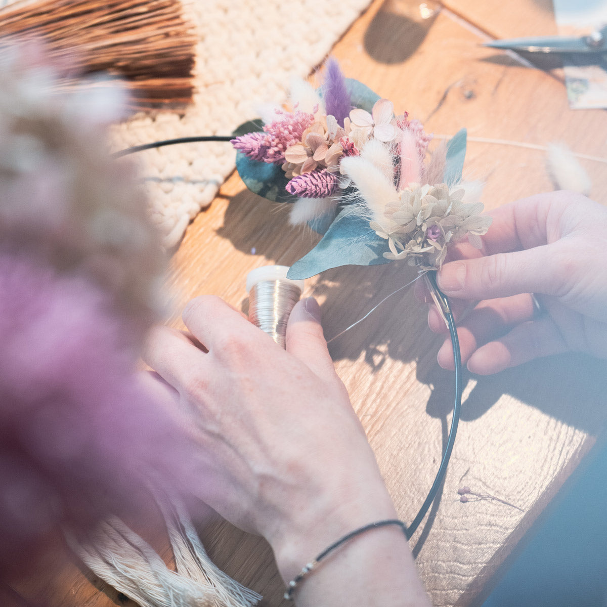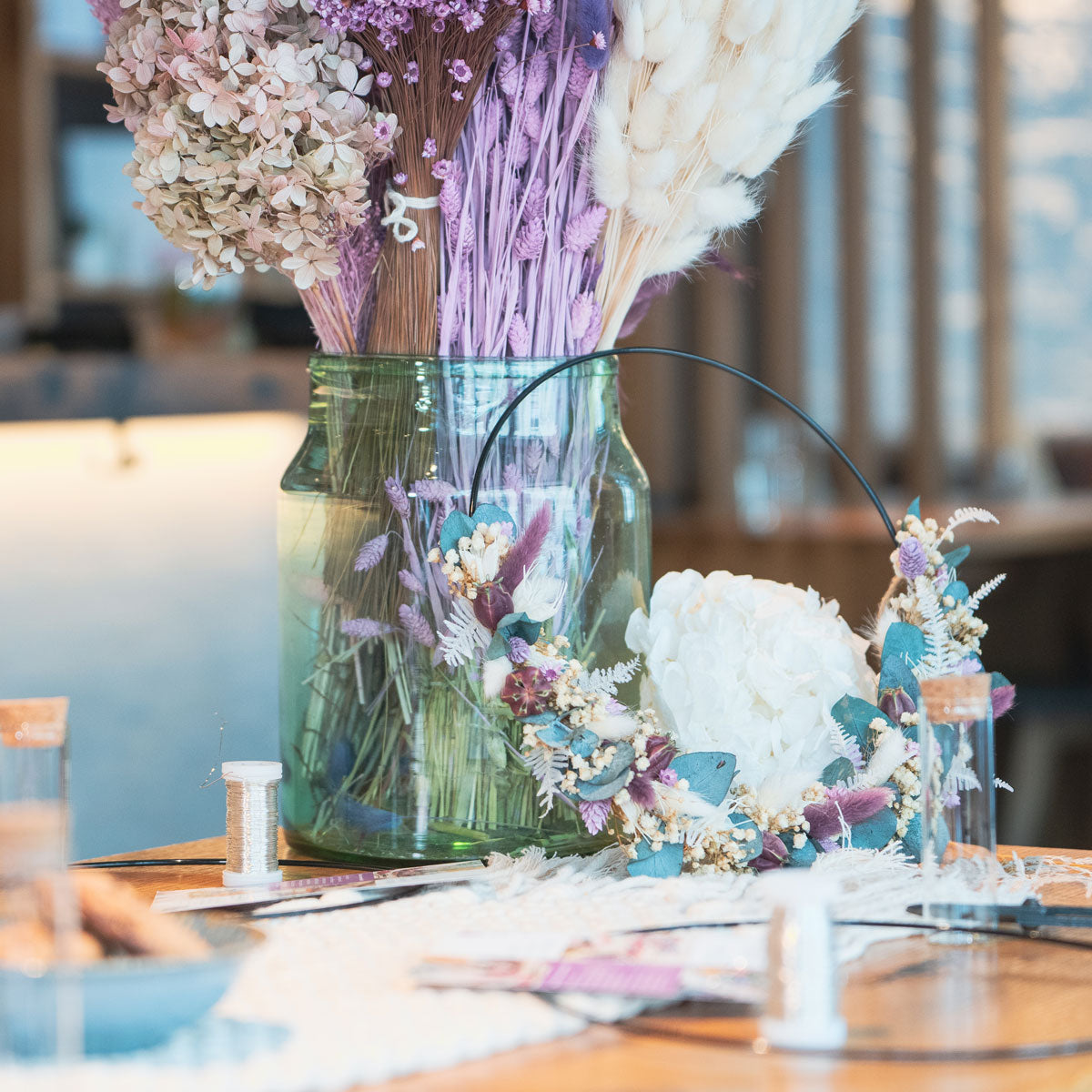 Blumen sagen mehr als tausend Worte – und bei diesem Workshop sprichst Du durch Deine Hände. In liebevoller Atmosphäre gestaltest Du einen halbgebundenen Loop aus Trockenblumen (Ø 25 cm, Holz oder Metall, Du hast die Wahl) – ein Kunstwerk für Dein Zuhause, das Dich jeden Tag daran erinnert, wie schön kreative Zeit sein kann.