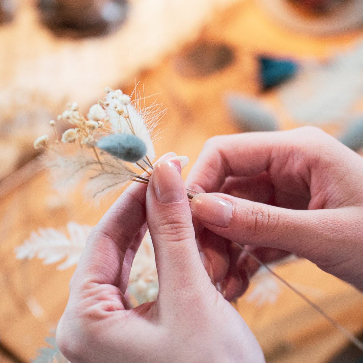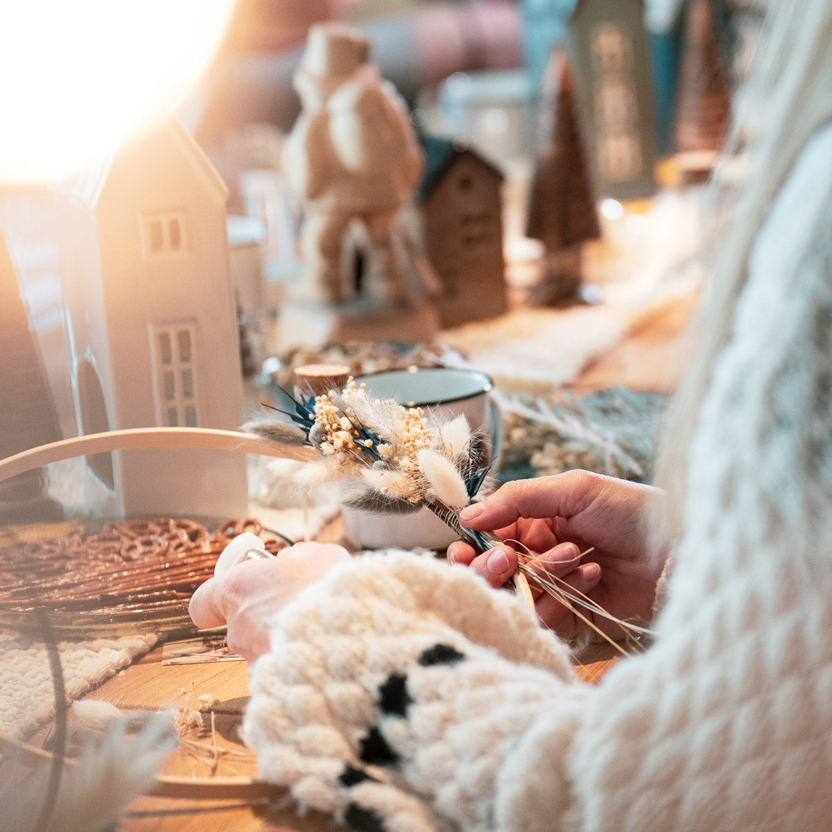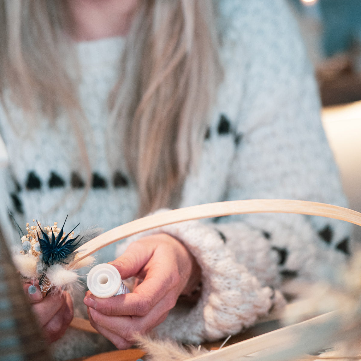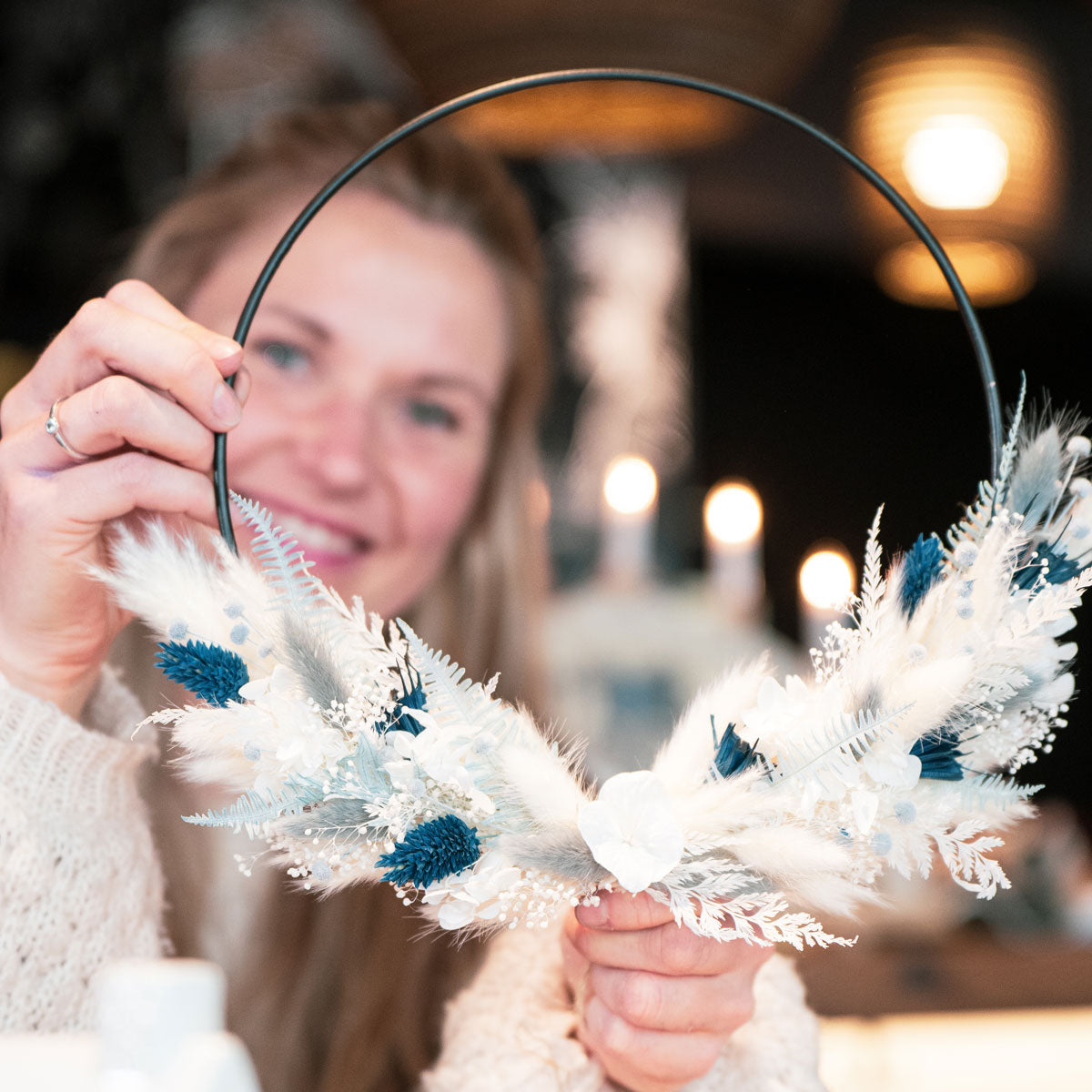 Wenn es draußen dunkler wird, beginnt drinnen die Zeit des Funkelns – und der floralen Magie. In diesem stimmungsvollen Workshop gestaltest Du einen eleganten Trockenblumen-Loop (halb gebunden) für eine festliche Atmosphäre, Jahr für Jahr.